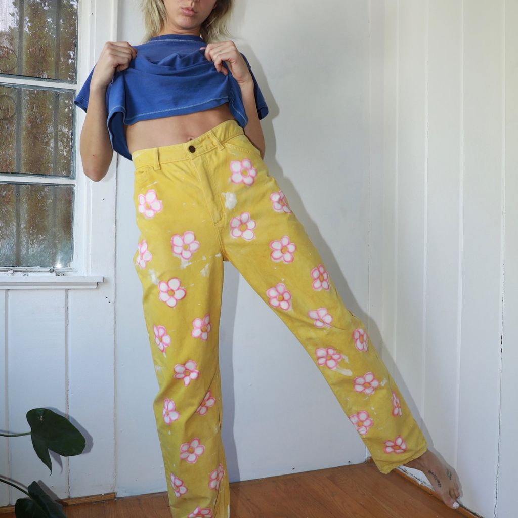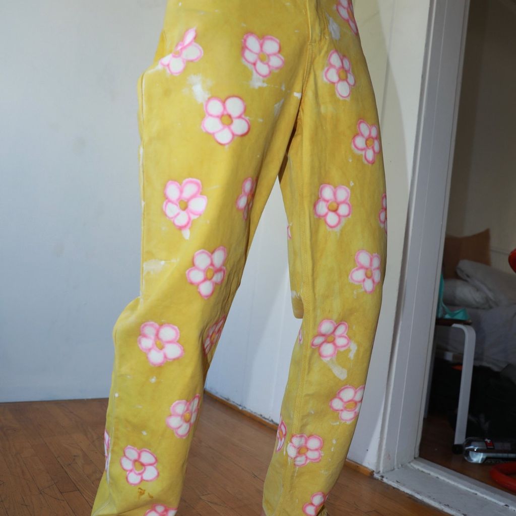 (Size 29”) One of a kind cotton chore pant hand dyed with buckthorn seeds. Designed by Tessa Bourne. USA grown 100% cotton. Sewn locally in Los Angeles. Painted by artist Matt Meinhardt. Size 29: Waist: 29” Rise: 12” Hip: 42” Inseam: 30” Upper thigh: 24” around