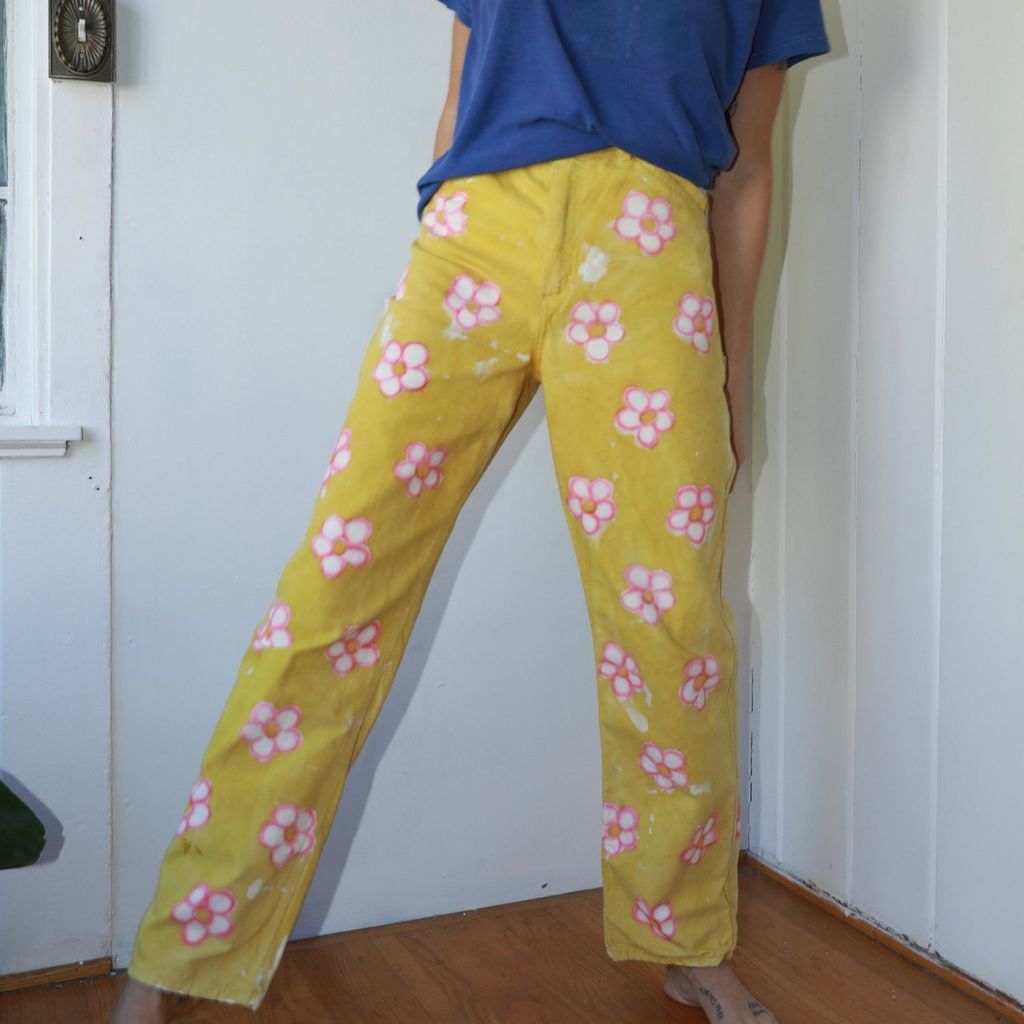(Size 29”) One of a kind cotton chore pant hand dyed with buckthorn seeds. Designed by Tessa Bourne. USA grown 100% cotton. Sewn locally in Los Angeles. Painted by artist Matt Meinhardt. Size 29: Waist: 29” Rise: 12” Hip: 42” Inseam: 30” Upper thigh: 24” around