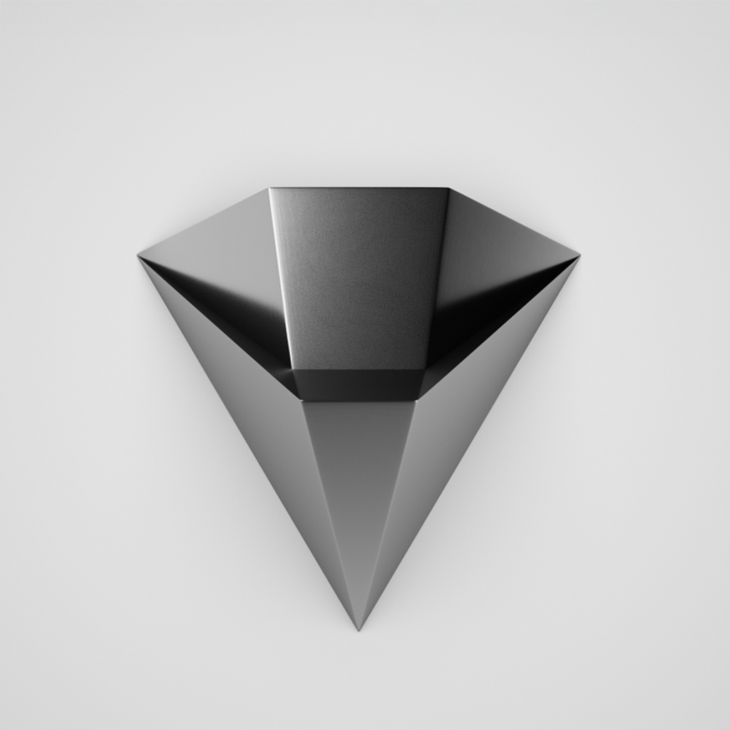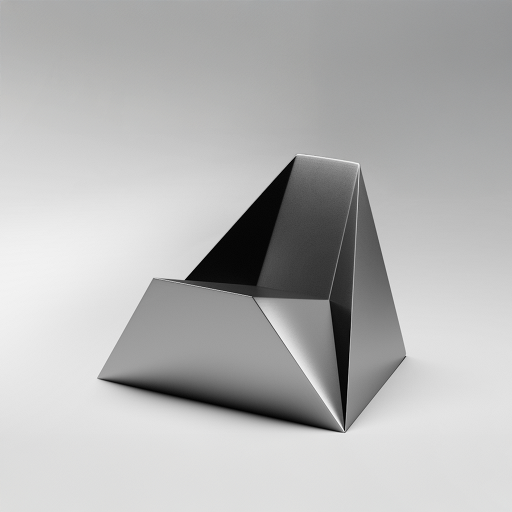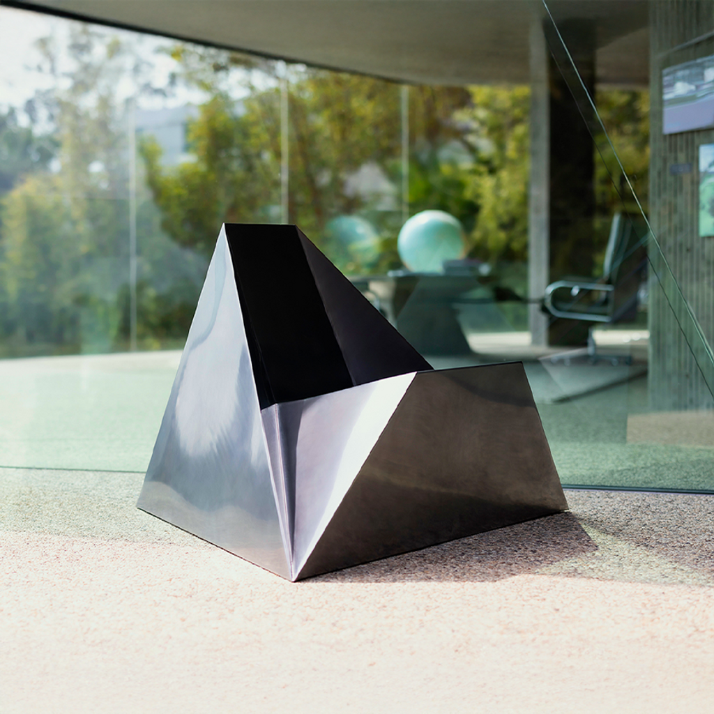 An anomaly of form, the Tetra Chair does not belong to any era. Its structure is drawn from the tetrahedron, a shape both primal and absolute. Seamless and metallic, it sits at the edge of the known, existing somewhere between presence and void.