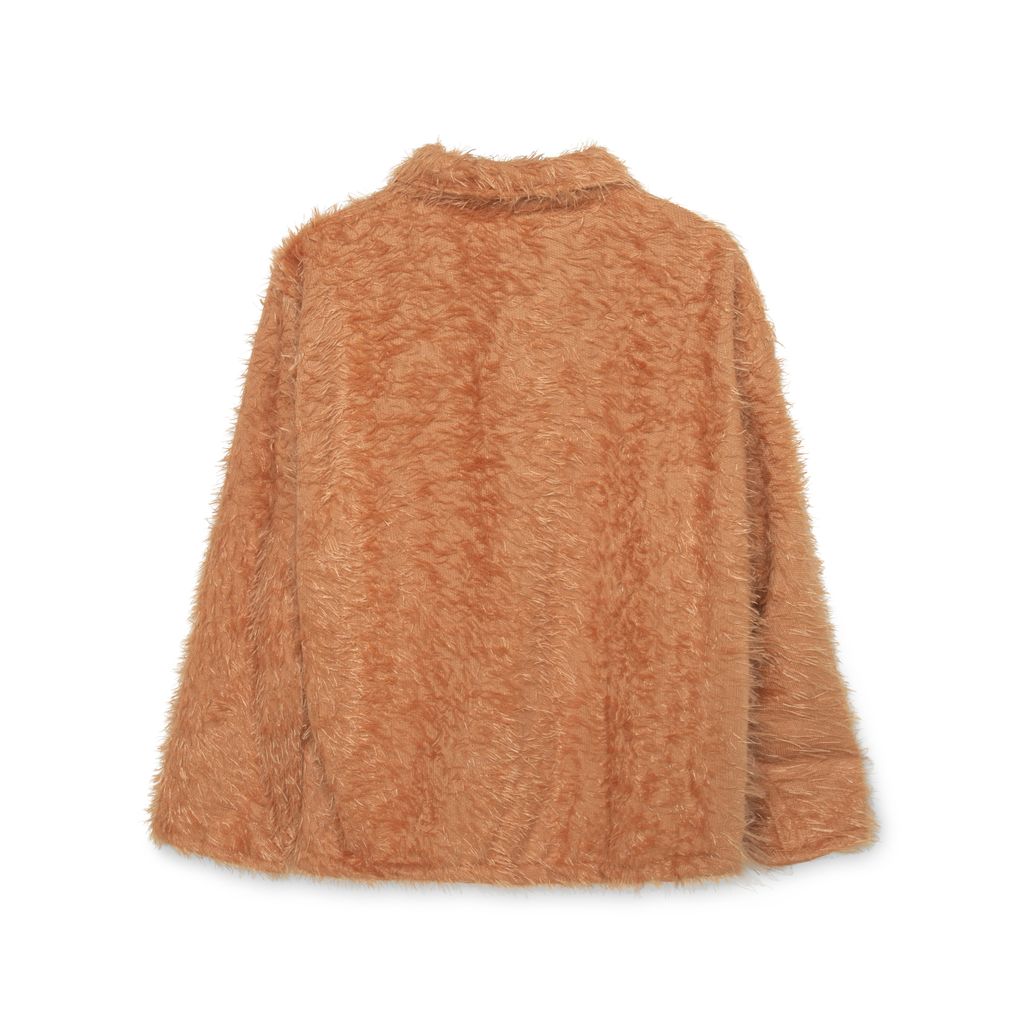 Textured cardigan features two front pockets, classic collar, and button front closure.