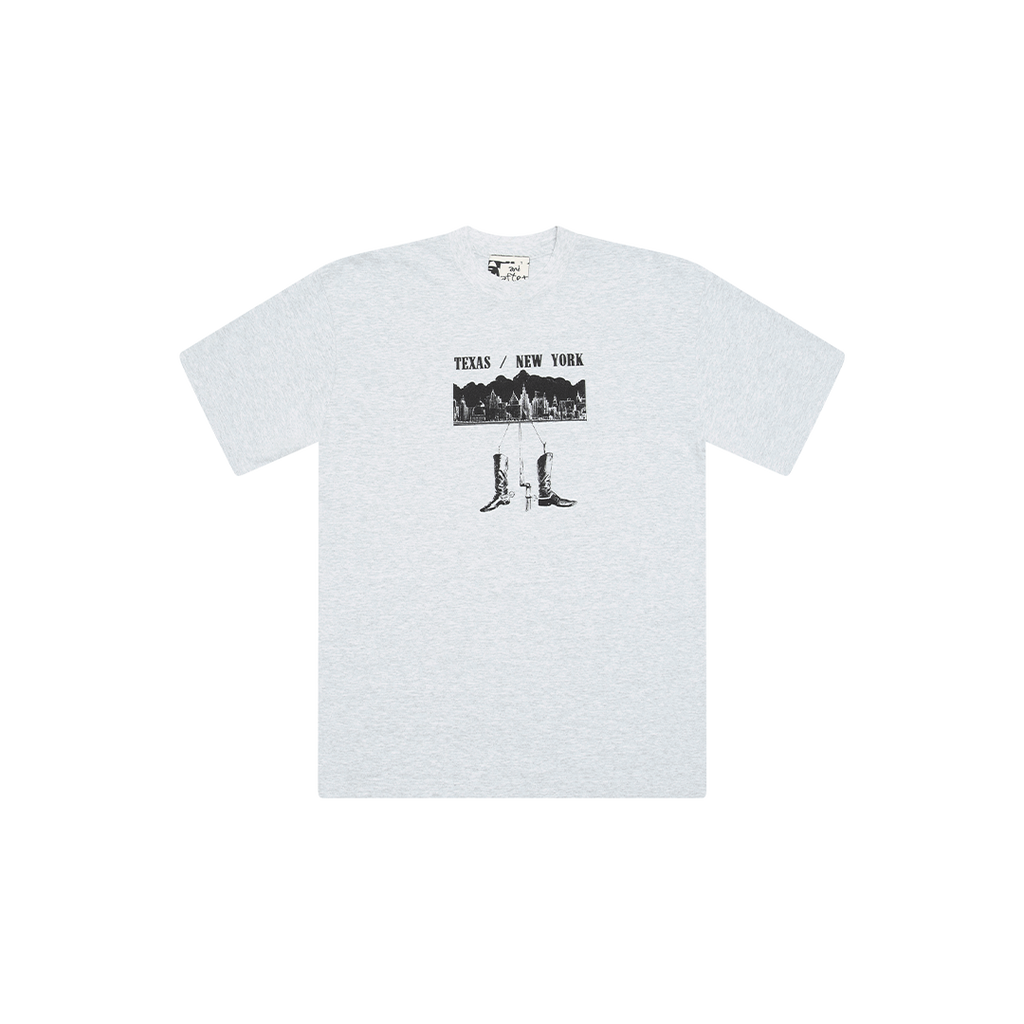 TF x AAT Grey Rodeo Tee features classic crew neck collar and graphic design.