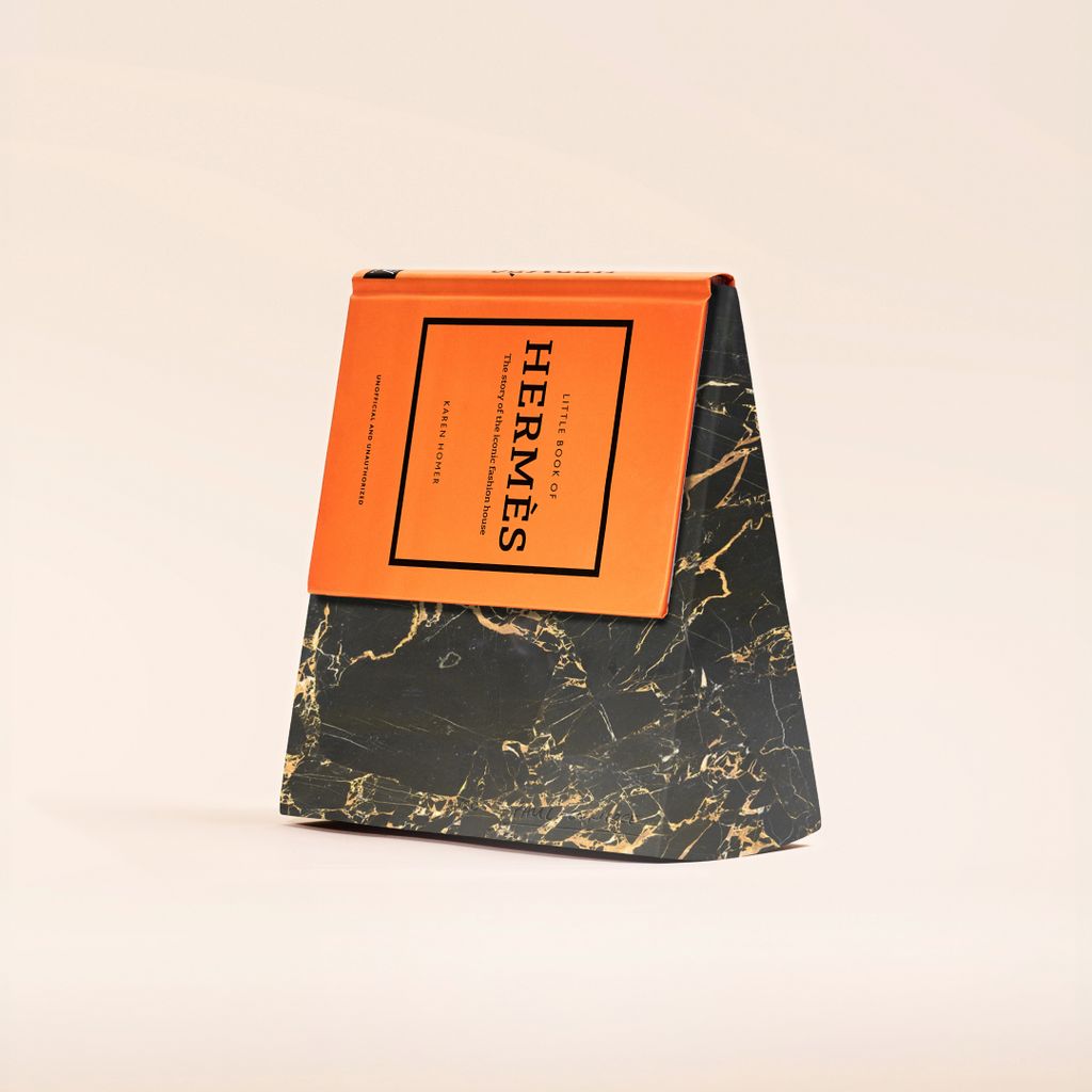 The simplicity in geometry of the wedge-shaped bookshape, with its large flat planes, becomes the perfect uninterrupted canvas to show off this intricately veined material to its full effect.