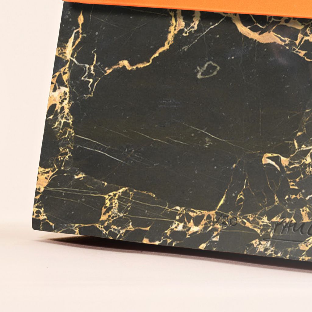 This new edition of The Bookmark in collaboration with SolidNature, available in both table and floor sizes, sees the book elevated further still through a Quartzite stone - Laguna. Quartzite is a very hard (and therefore strong) material. Laguna Quartzite is an unusual dark and varied aqua colored stone with gold, tan, and brown veining. Whilst the large Bookmark is made out of a Quartzite, the smaller version is made out of a black marble with intensive goldisch coloration displayed in its veins, making a striking structure.