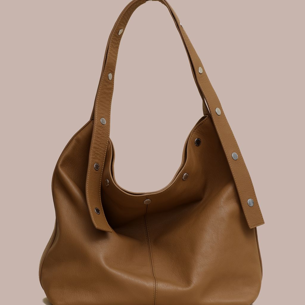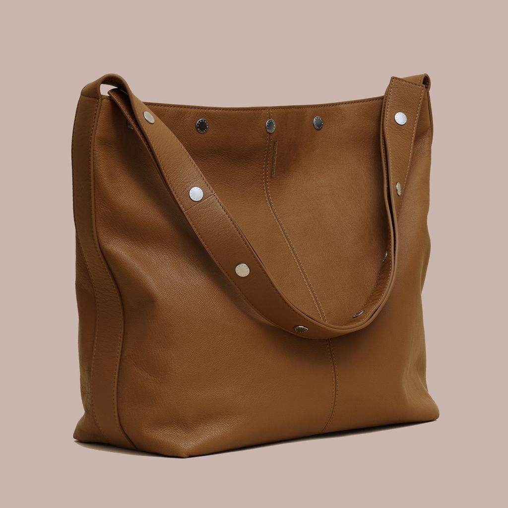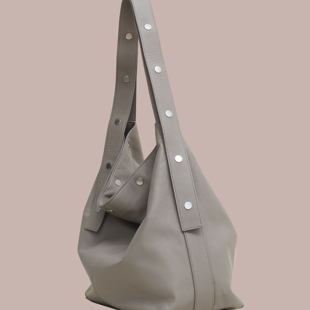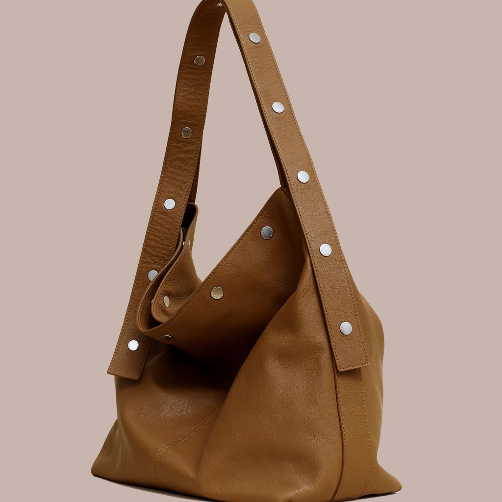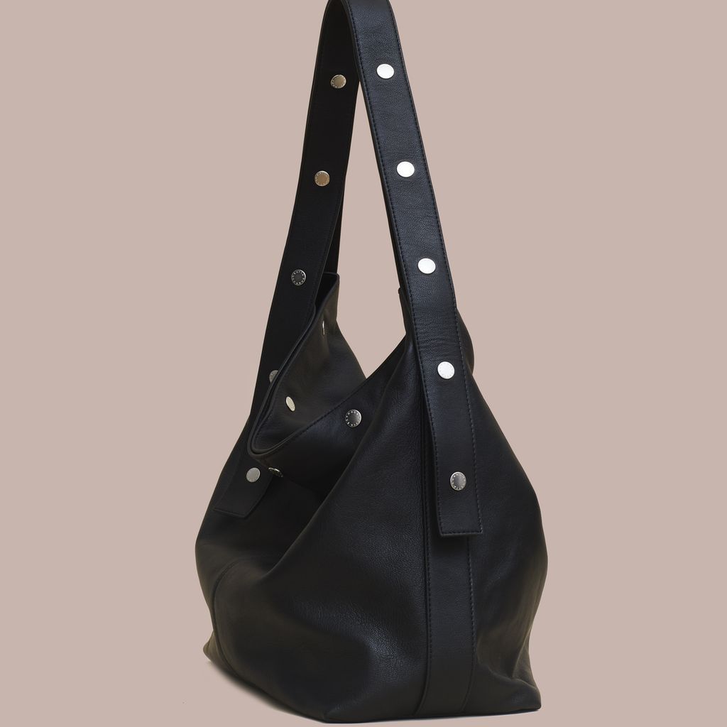 Expanding on the world of The Snap, The Bucket offers a more utilitarian approach. This spacious bag easily fits a laptop, book, and water bottle with room to spare. The straps snap together, allowing the user to adjust the handle drop between x inches and x inches, easily transforming from shoulder bag to cross body bag. Made in vegetable dyed Italian lambskin with a debossed logo and custom logo snaps. Internal zip pocket. Available now for pre order, this bag will ship mid October.