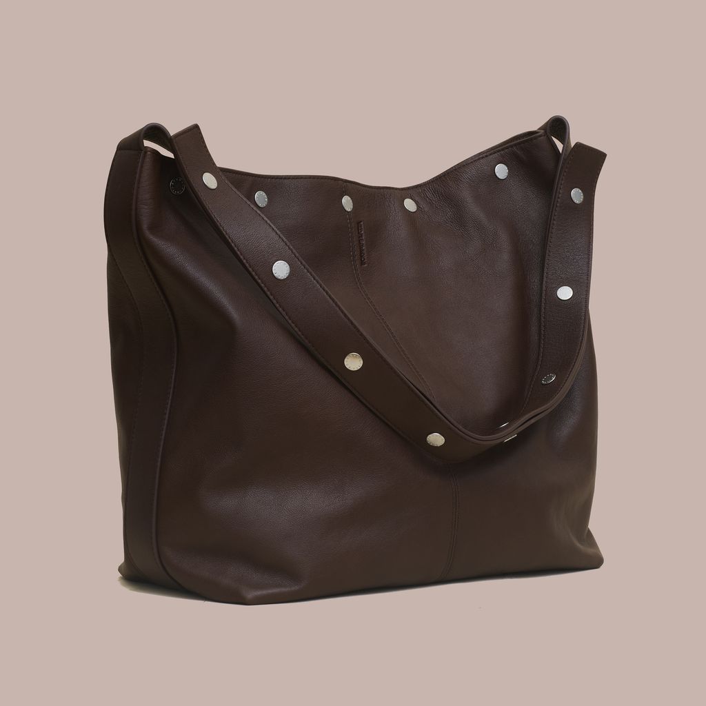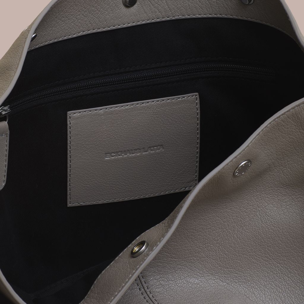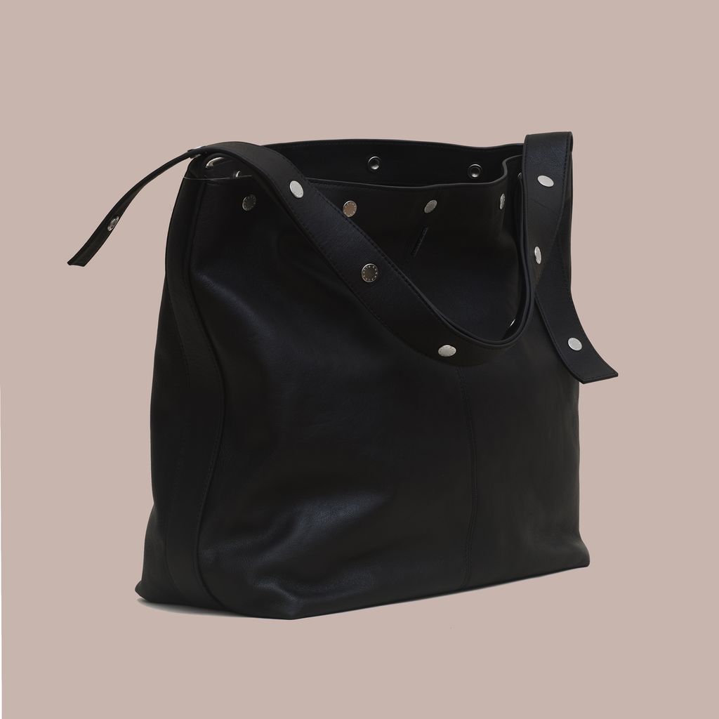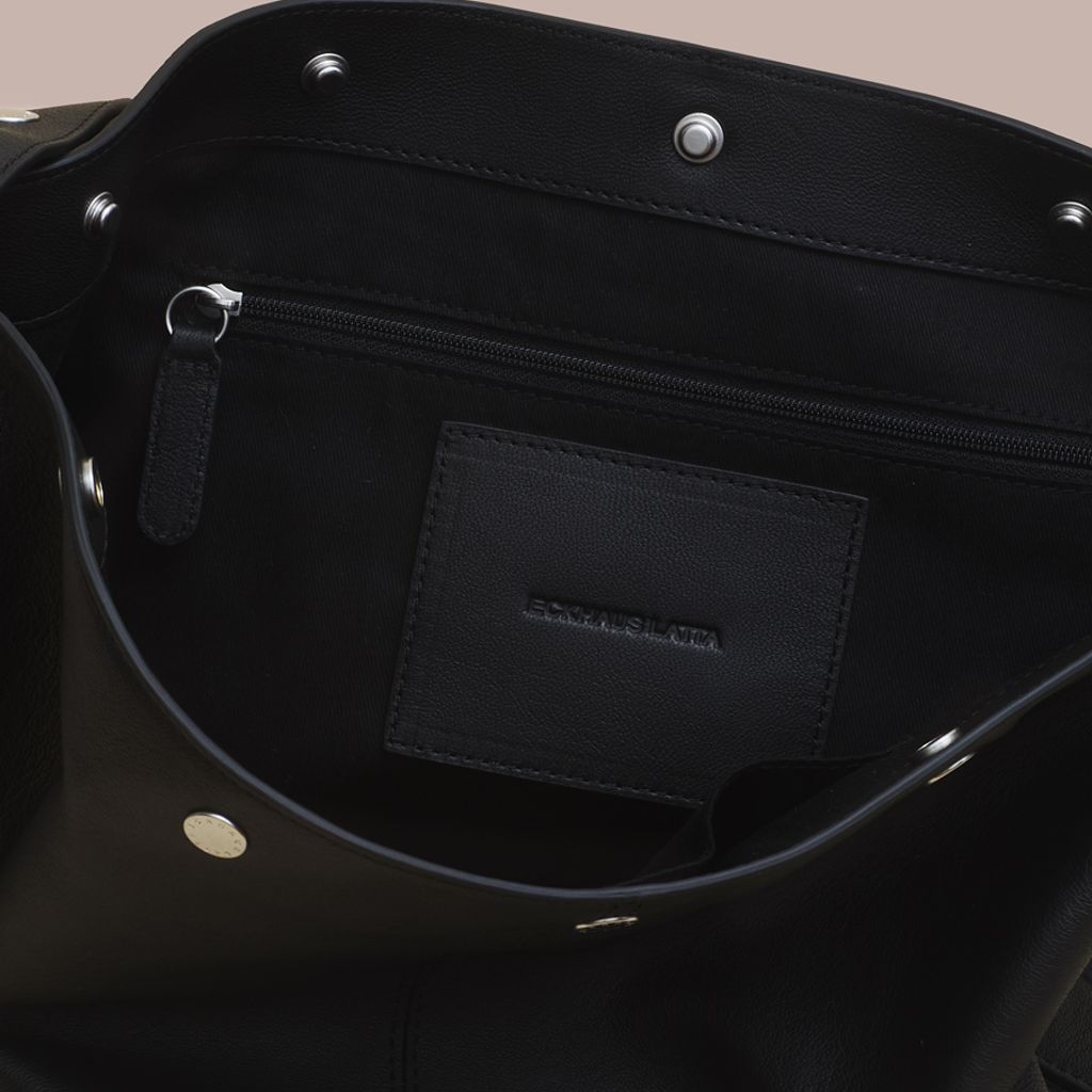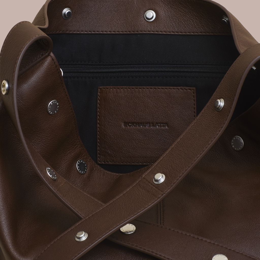 Expanding on the world of The Snap, The Bucket offers a more utilitarian approach. This spacious bag easily fits a laptop, book, and water bottle with room to spare. The straps snap together, allowing the user to adjust the handle drop between x inches and x inches, easily transforming from shoulder bag to cross body bag. Made in vegetable dyed Italian lambskin with a debossed logo and custom logo snaps. Internal zip pocket. Available now for pre order, this bag will ship mid October.