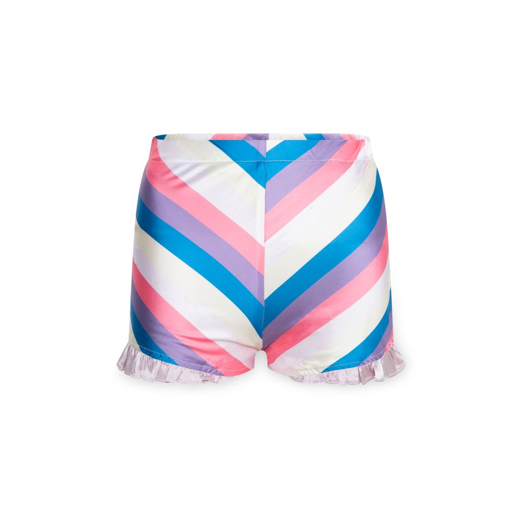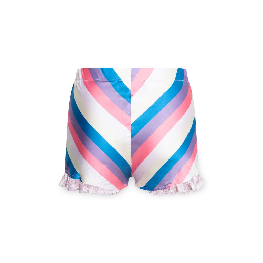 The Candy Short features high waist, elasticated waistband, mini self ruffle at either side seams, and fully lined shorts.