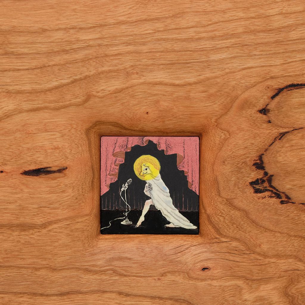 Glazed porcelain tiles embedded in oil-sealed cherry artist’s frame.