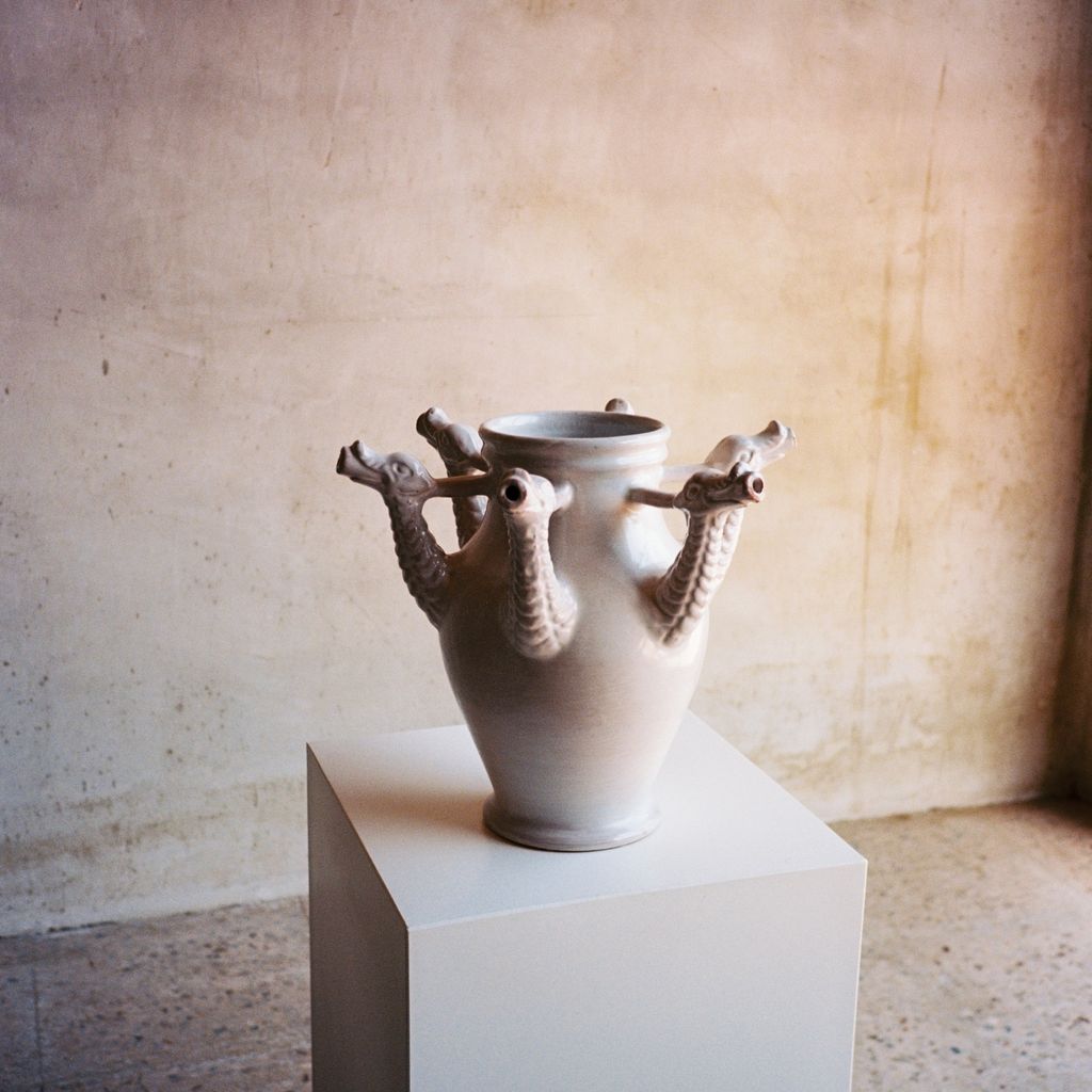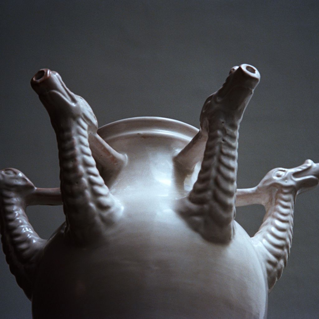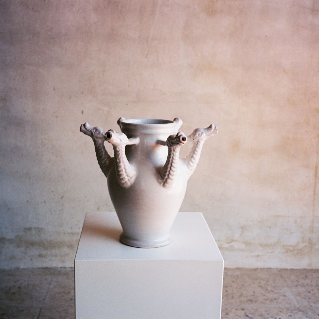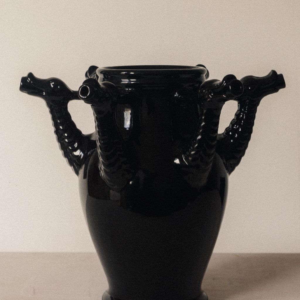 Inspired by the historic Castelli drug pots from the Orsini-Colonna collection, the Drago Vase reimagines the vessels once used by apothecaries to store herbal syrups. This ceramic piece features six hand-sculpted dragon heads, offering a contemporary take on an original pot created for a traditional wedding trousseau. Hand-thrown in terracotta and finished with a lead-free glaze, the vase highlights the beauty of artisanal craftsmanship while giving a modern, sculptural presence to any interior.