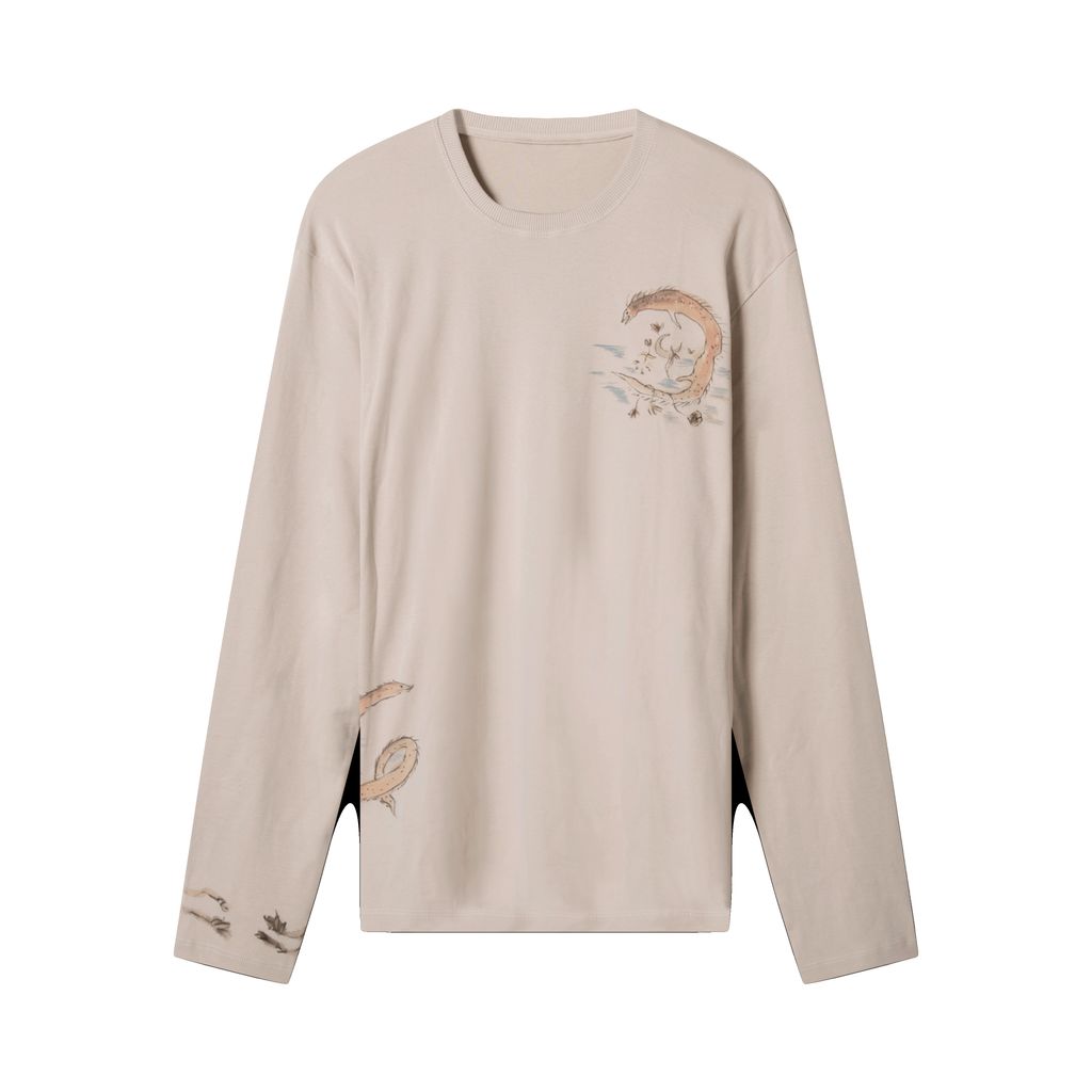 These beige somewhat oversized long sleeves are handmade and inspired by religious and spiritual iconography from the late 14th-mid-17th century.
