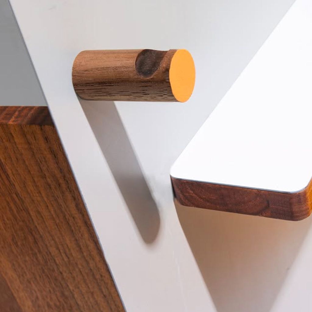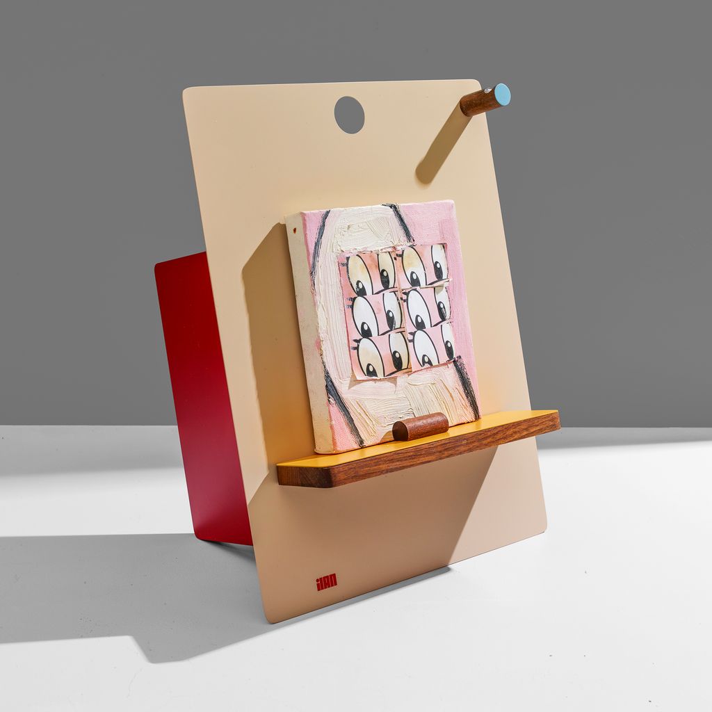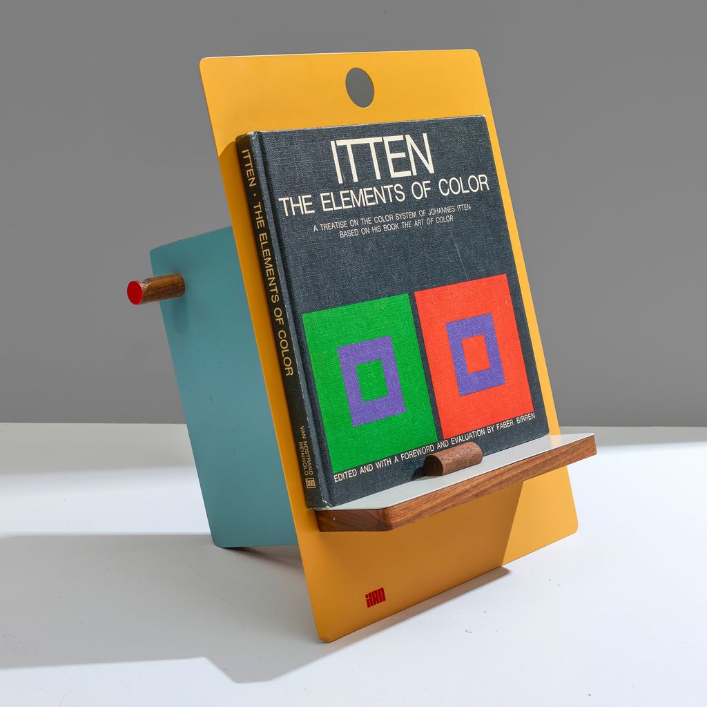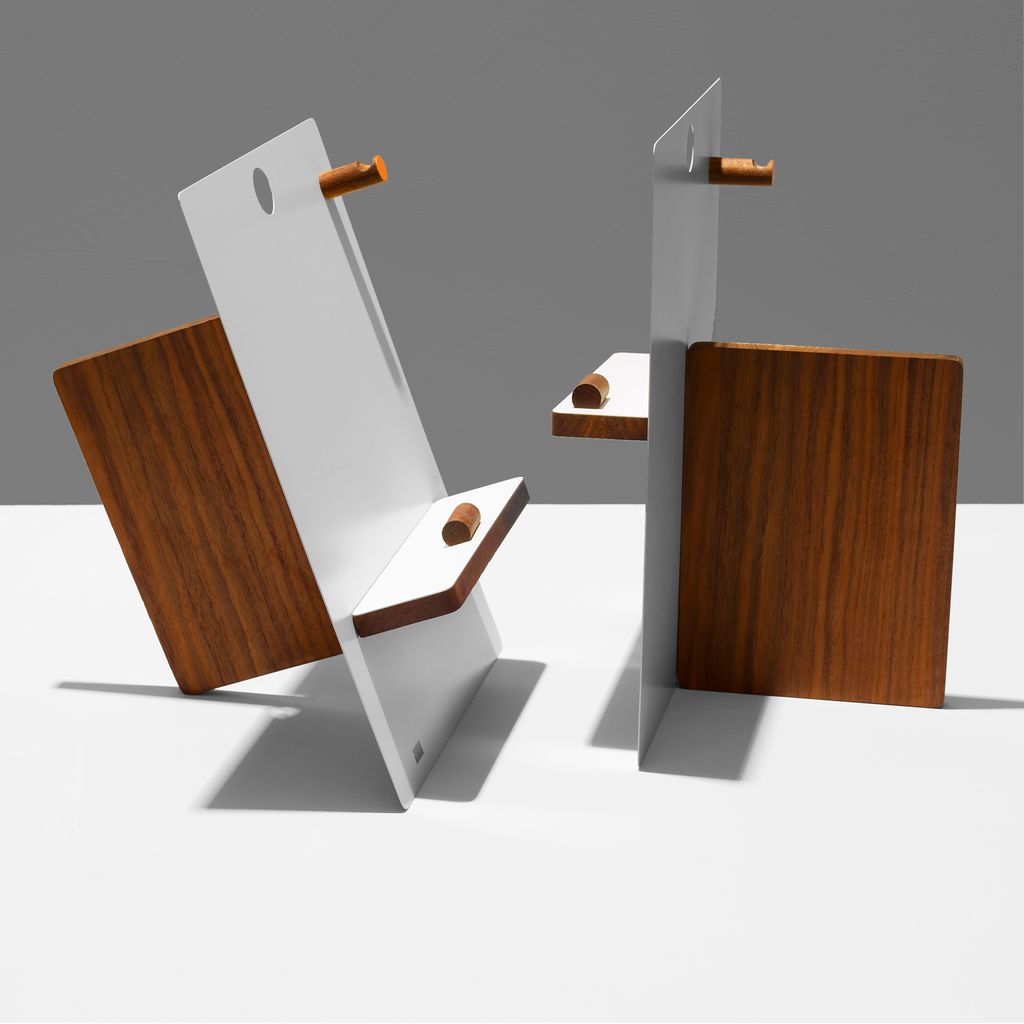 The Easel is a versatile multi-sculptural stand. It has magnets that allow you to easily adjust the position of your items on this easel-type desktop or counter top stand. Whether you're using it in your office or kitchen, it is perfect for holding a cookbook, iPad, magazines, and even can be used for holding a phone for a video call or shoot. Crafted from solid walnut, with magnetic painted metal components, its configurability and versatility is endless. This artful easel looks great in your home while its magnetic wizardry lets you customize your setup as you please. And when it's not in use, its magnetic components easily nestle flat in a drawer, ensuring it never takes up more space than needed.