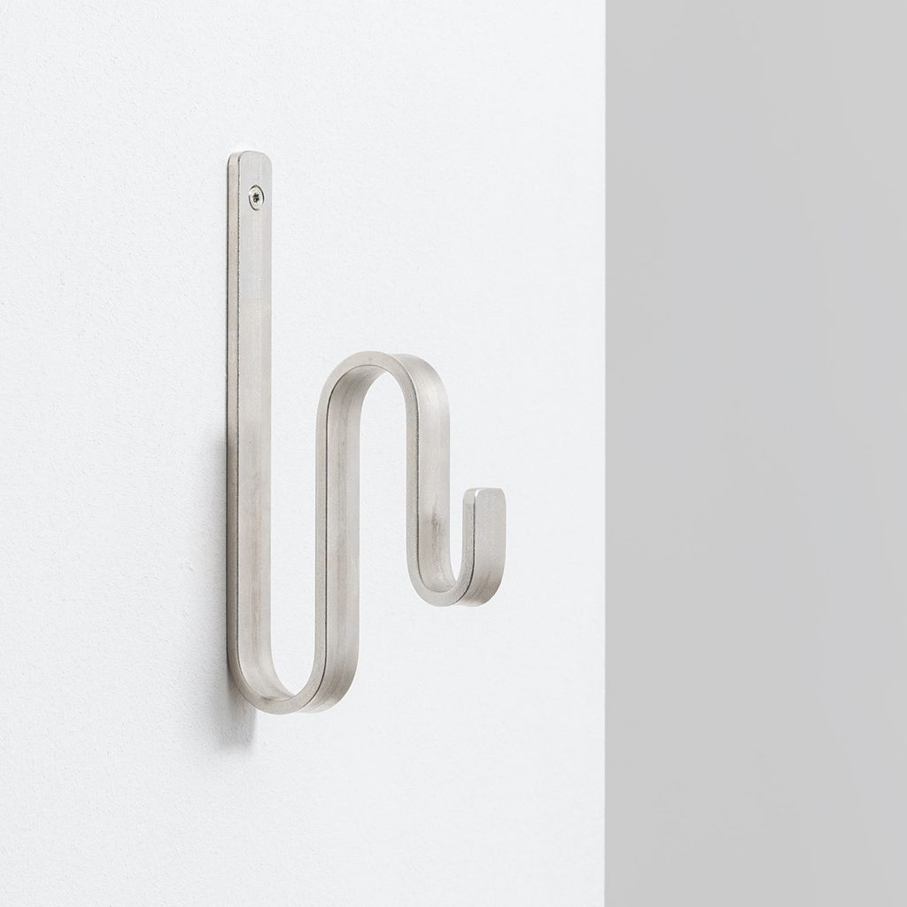 The Elephant Hook features curved design in nickle plated steel or ultramarine blue steel.