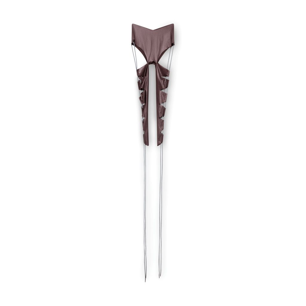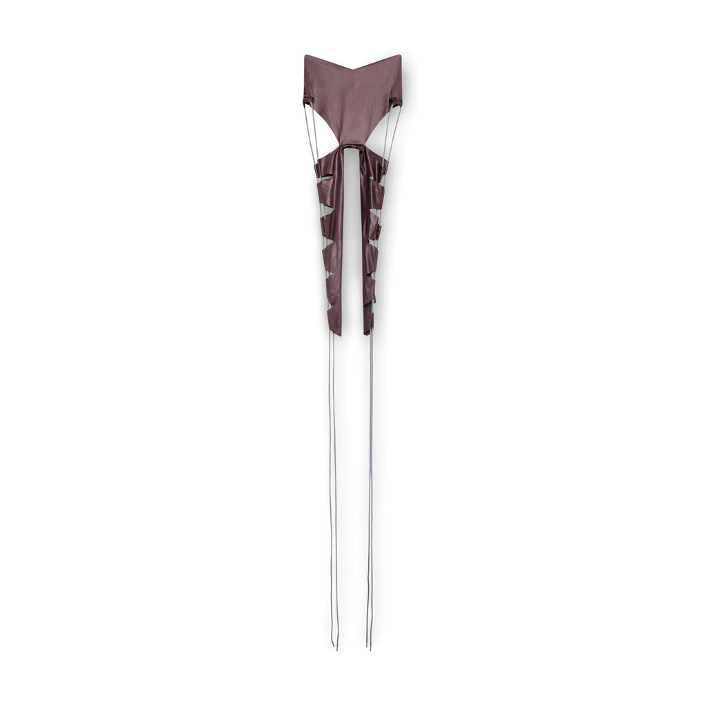 4 way stretch "wet look" spandex with black and white cord tie along the length of the leg.