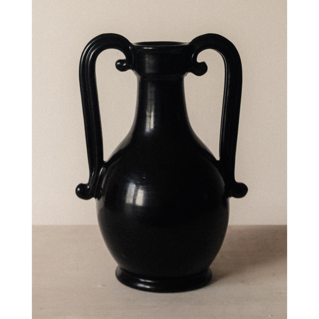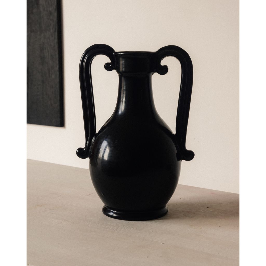 Inspired by the historic Castelli drug pots from the Orsini-Colonna collection, the Fiasca vase reimagines the vessels once used by apothecaries to store herbal syrups. Hand-thrown in terracotta and finished with a lead-free black glaze, the vase highlights the beauty of artisanal craftsmanship while giving a modern, sculptural presence to any interior.