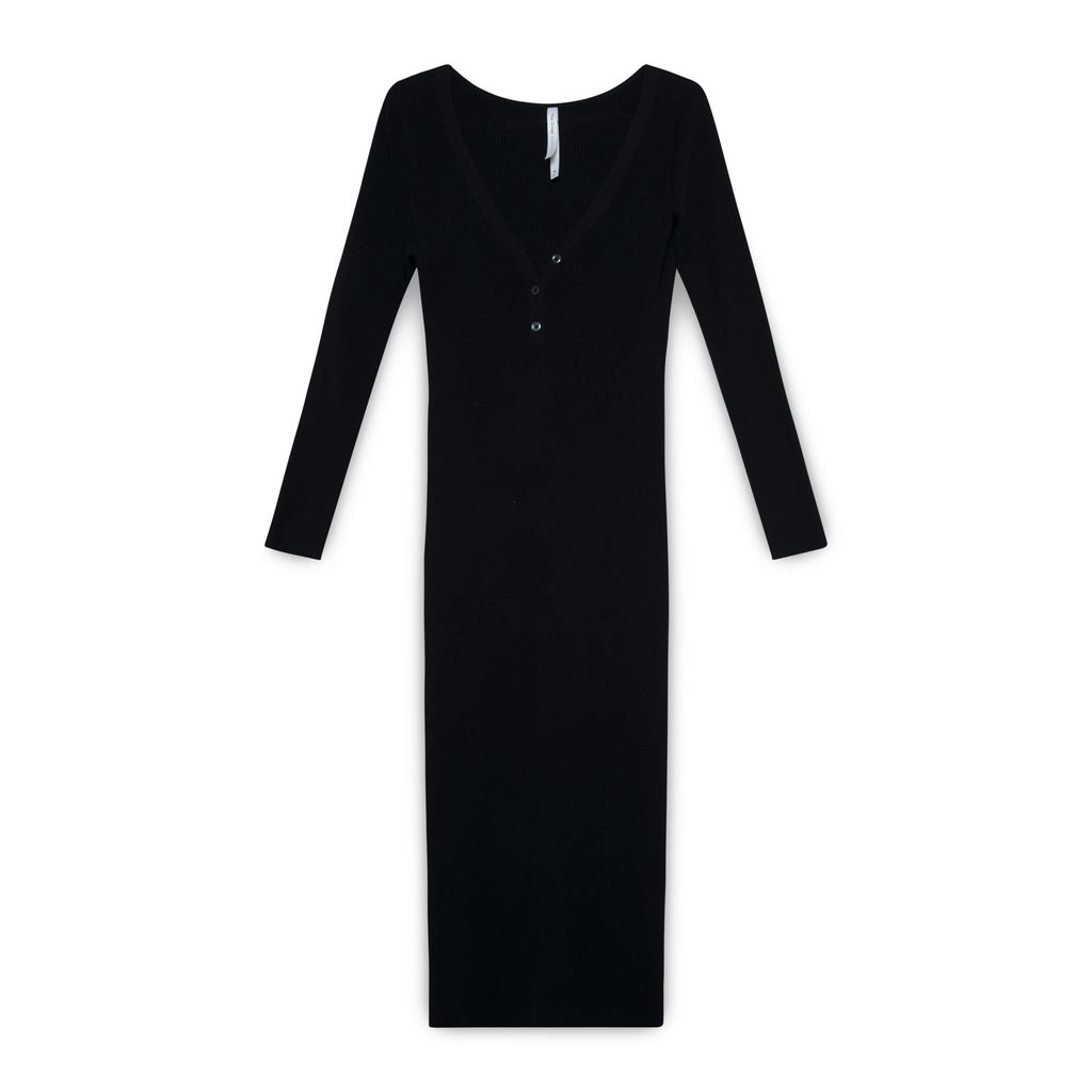The Group by Babaton Henley Sweater Dress features V neckline, functional button closure, and ribbed material.