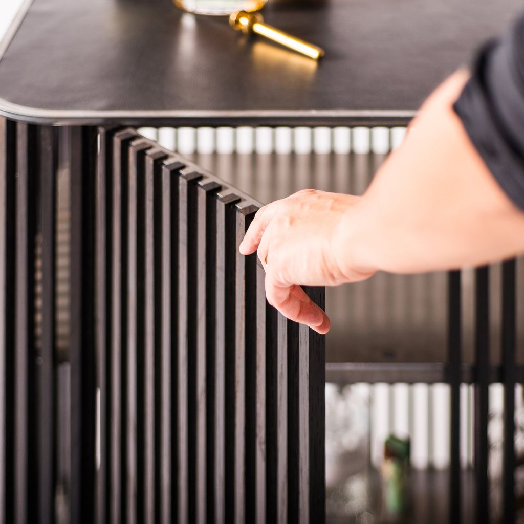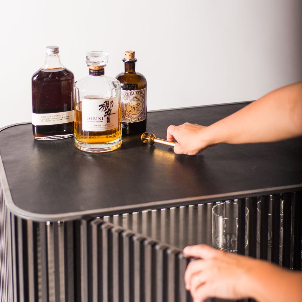 Be it in the gentleman’s corner of your apartment or center stage in your living room, the Bar in its simplicity, serves as a humble vessel for your most precious liquids. The opacity of the ribbed wood enclosure allows for one’s imagination to run wild. Slip a finger through the wood slats on its front to effortlessly pull open its doors and reveal a splendor of hidden vices. A leather top makes your drink prep all the more enjoyable. Beautifully aging with time, the Bar will serve as a trusted companion for years to come.