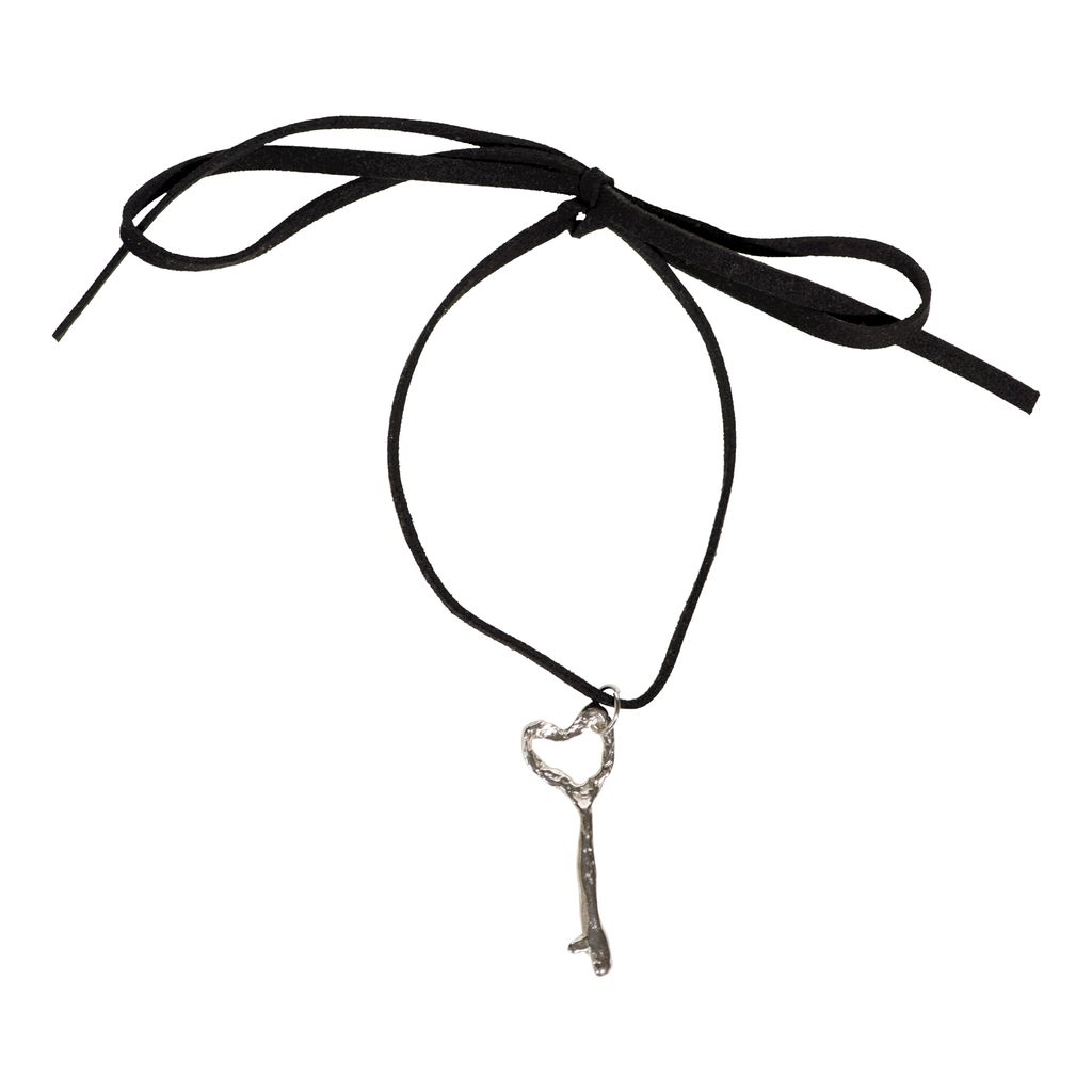 Heart shaped key on black velvet chord.