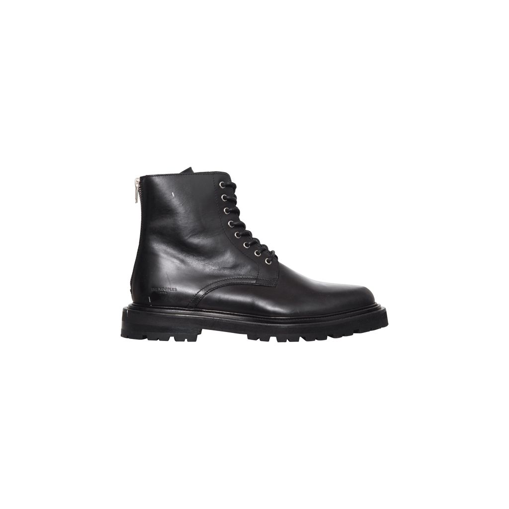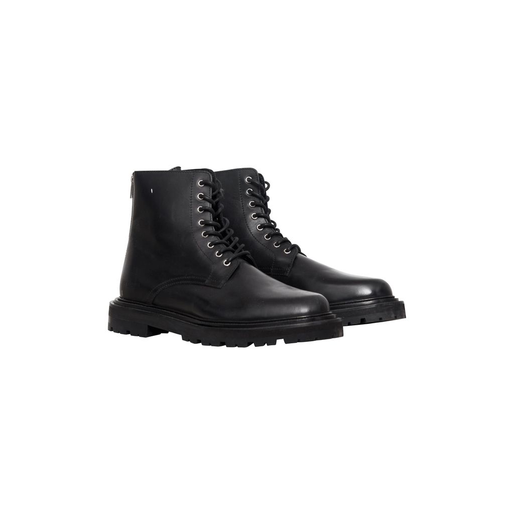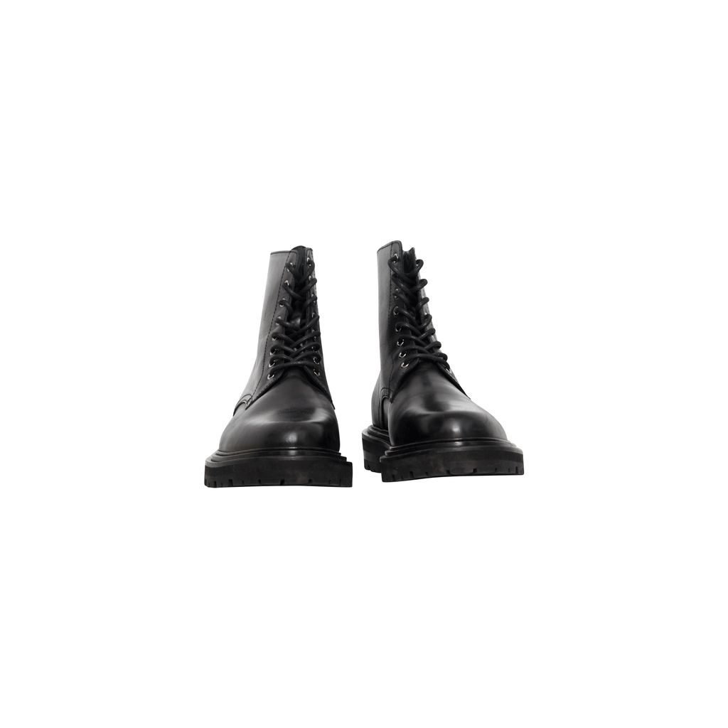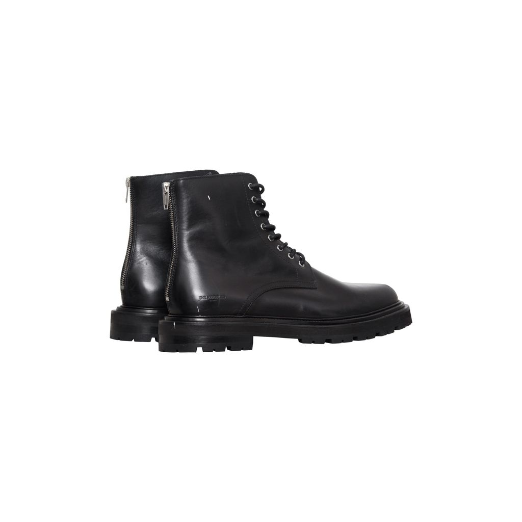 The Kooples Black Work Boot features 16 eyelet lace up and back zip closure
