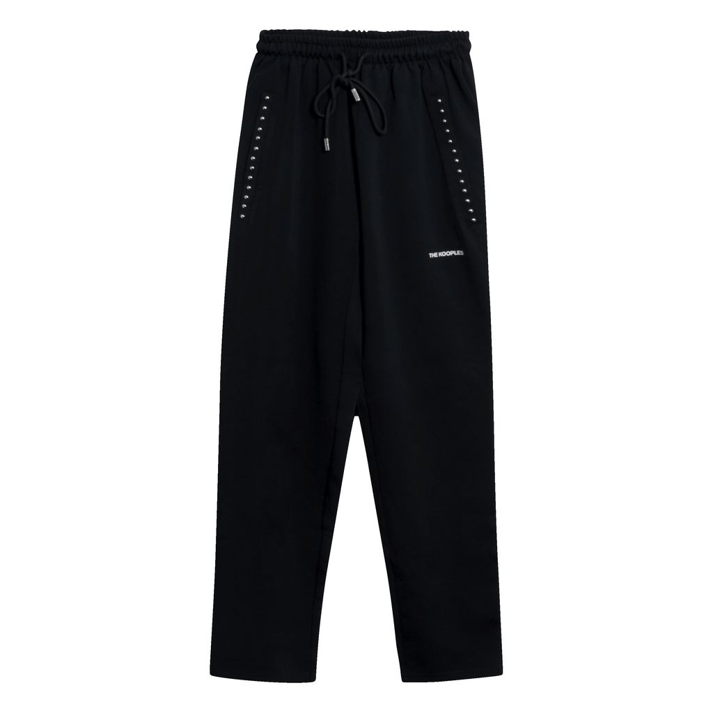 These easy to wear Kooples Sport pants feature studded side pocket openings, an elastic stretch drawstring waistband, and have a tapered cropped silhouette. The Kooples logo is screen-printed on the left leg. Gently worn in excellent condition.