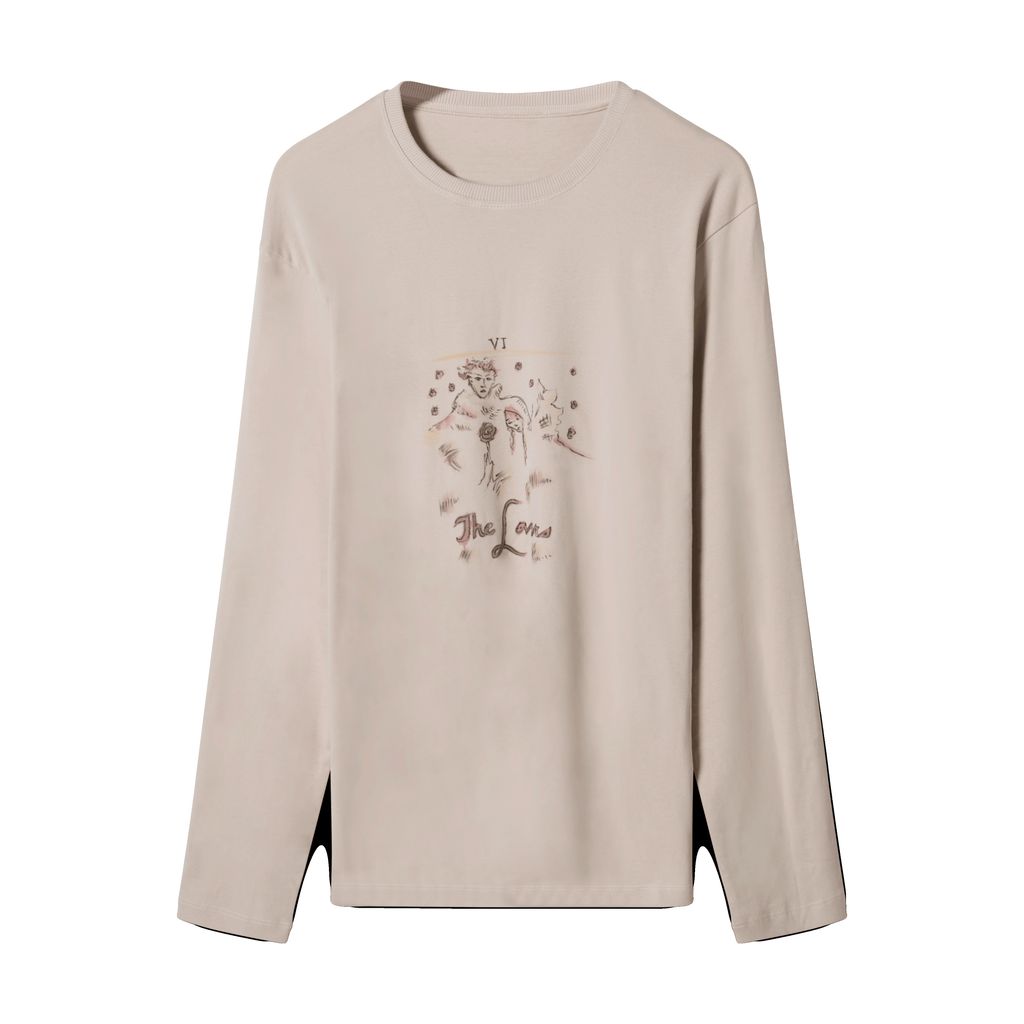 These beige somewhat oversized long sleeves are handmade and inspired by "The Lovers" tarot card.