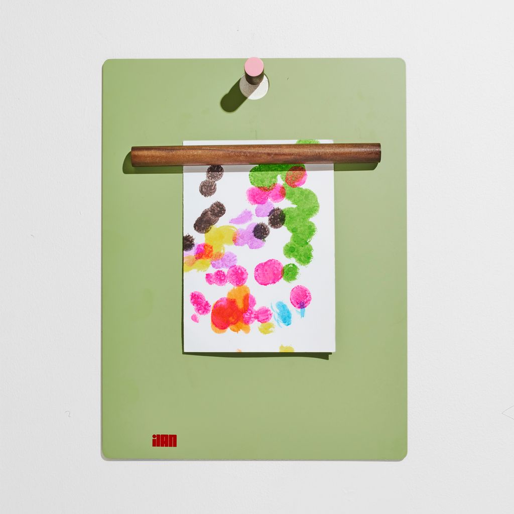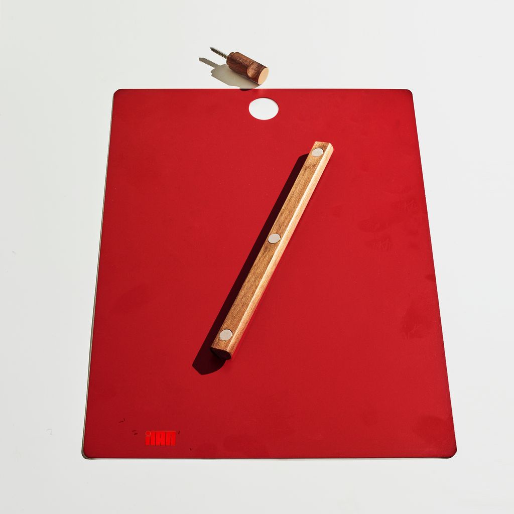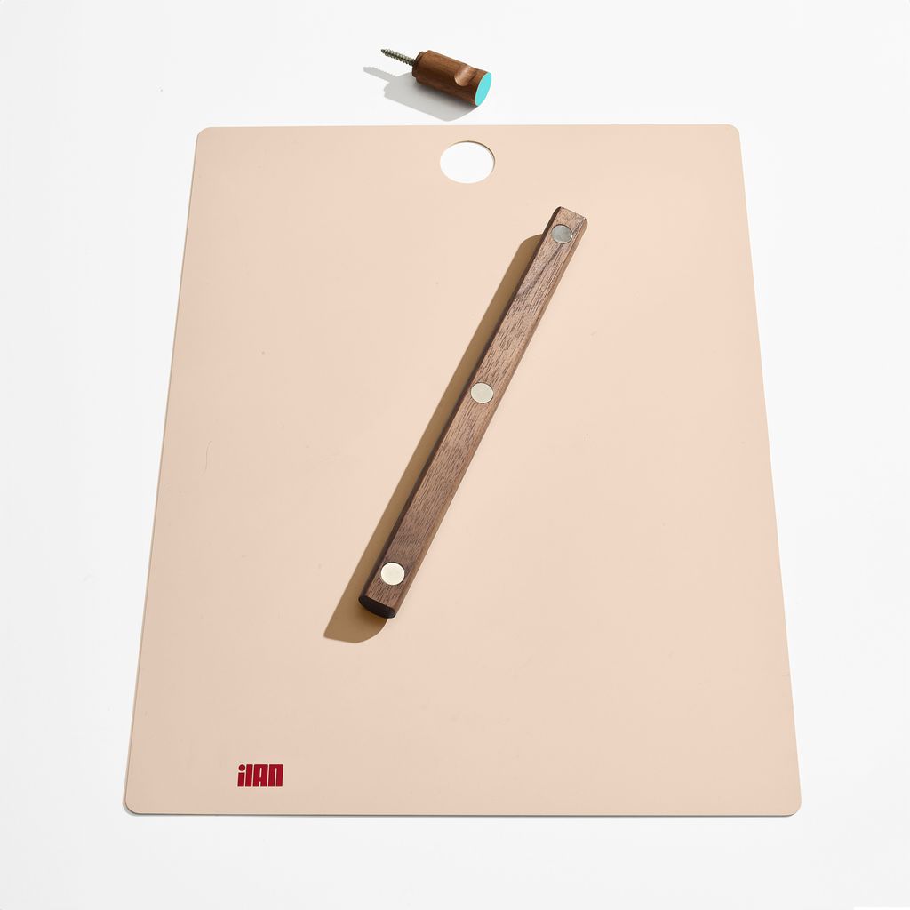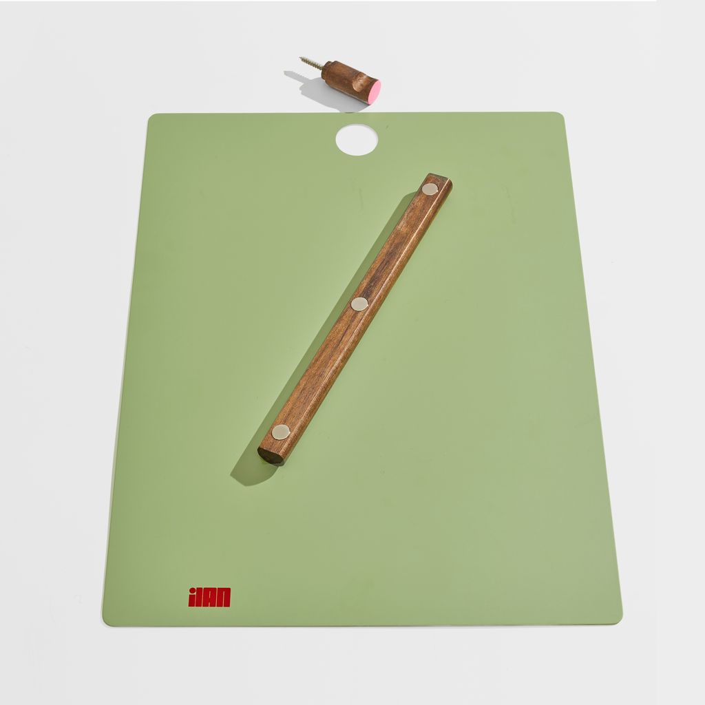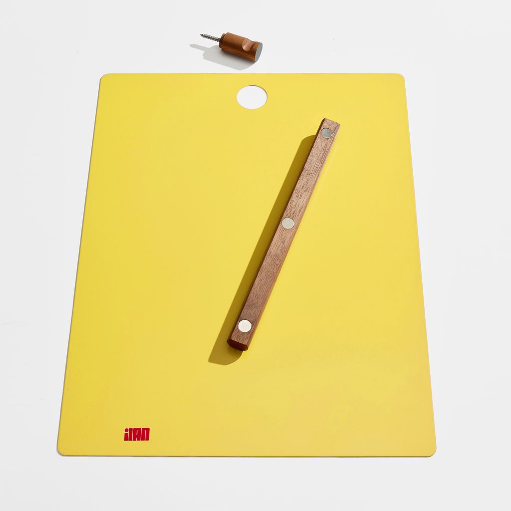 The Magnetic Clipboard invites you to leave a note, keep a list, express yourself. Post this communication tool in an entryway, office or kitchen. Write directly on the metal board with a dry-erase pen or secure up to twenty sheets of paper with the magnetized wooden rod. Hang a pen or keys from the hook. In solid walnut and powder-coated metal.