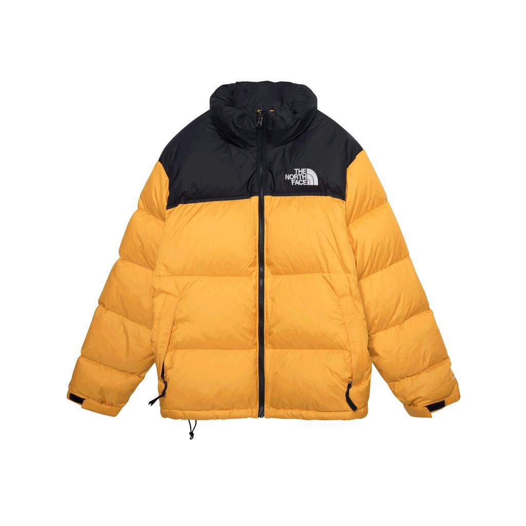 The North Face 1996 nuptse jacket features puffed exterior, black zipper, and dual pockets.