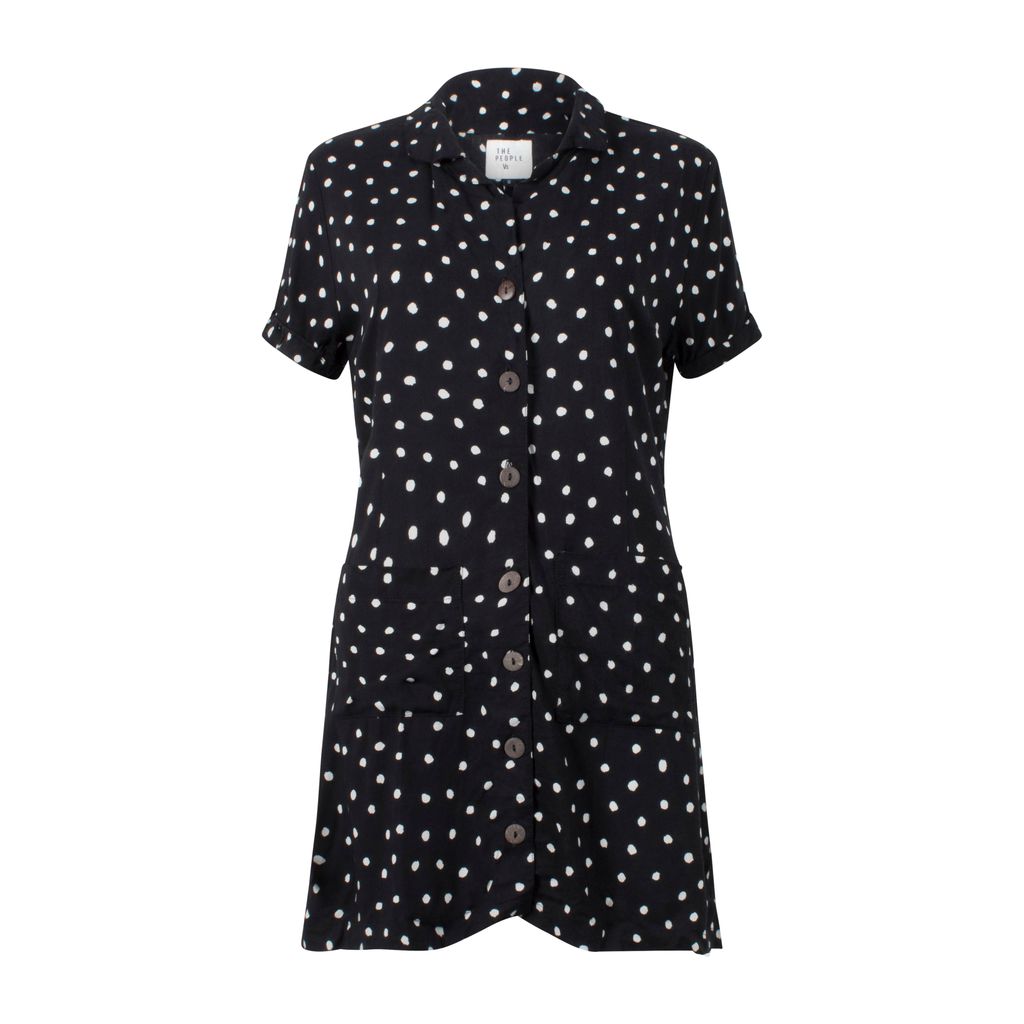 Spot on from The People Vs. Spring Summer 19 Collection. Made from lightweight 'On The Dot' polka-dot fabric, this mini dress has a front button-down closure with bespoke coconut button fixtures. It has a relaxed silhouette and boutique soft wash treatment that provide maximum wearability and comfort. Pair it with your favorite oversized denim jacket and combat boots for a cool casual look. Gently worn in excellent condition.