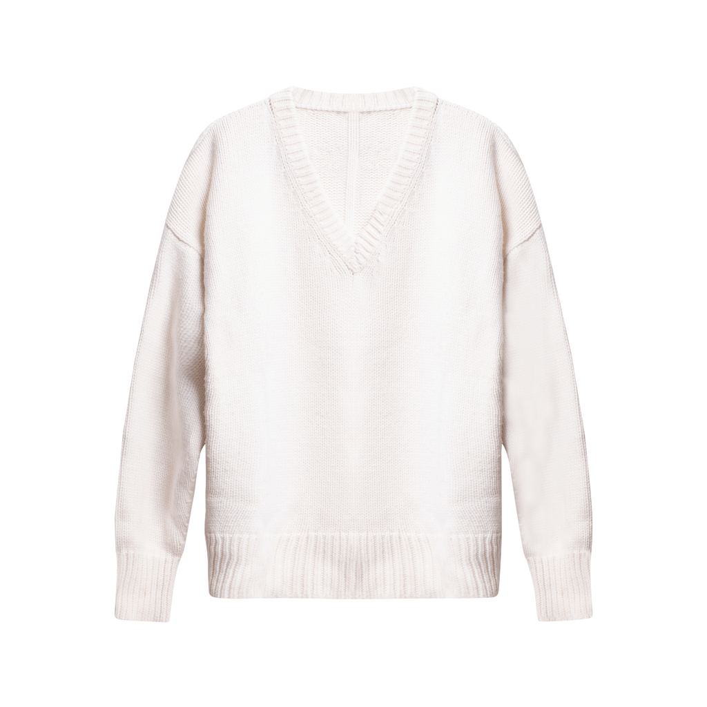 The Row Davion Wool & Cashmere Sweater features deep V-neck collar, ribbing at collar, cuffs, and hem.