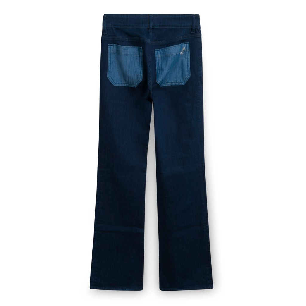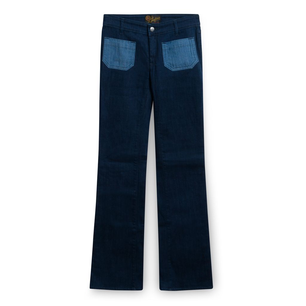 These nostalgic vintage flare jeans from The Seafarer features a front button-zip closure, light denim contrast front/back pockets, and has a tall flared silhouette.