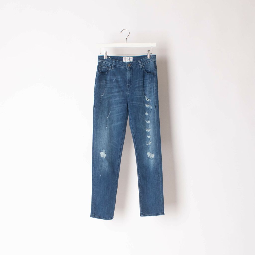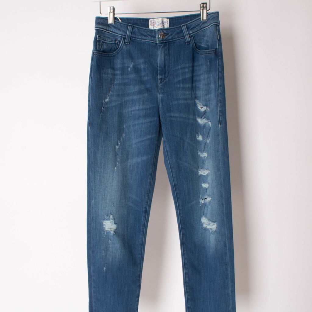 Skinny blue jeans with distressed details. New with tags.