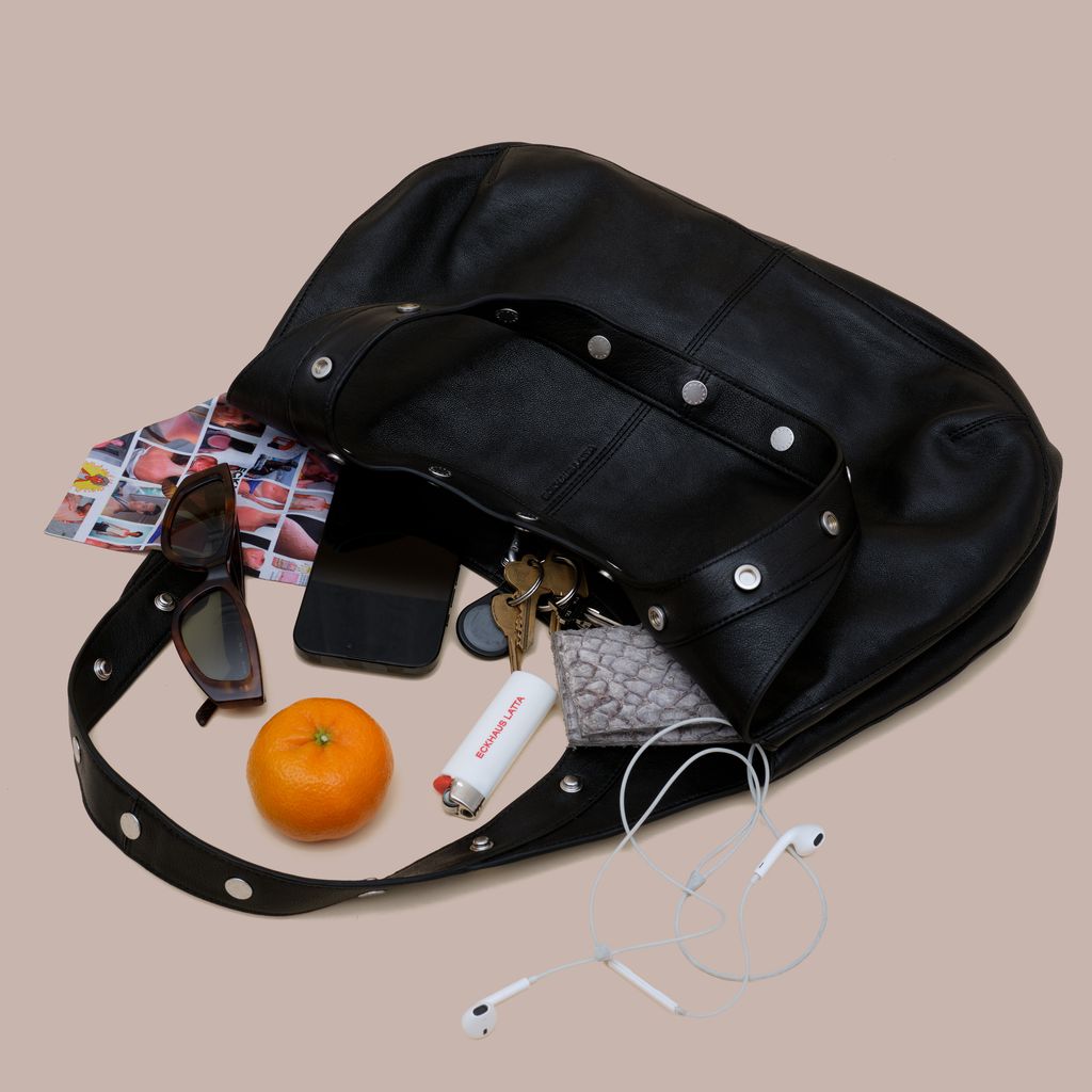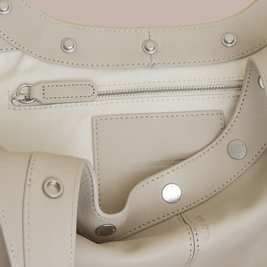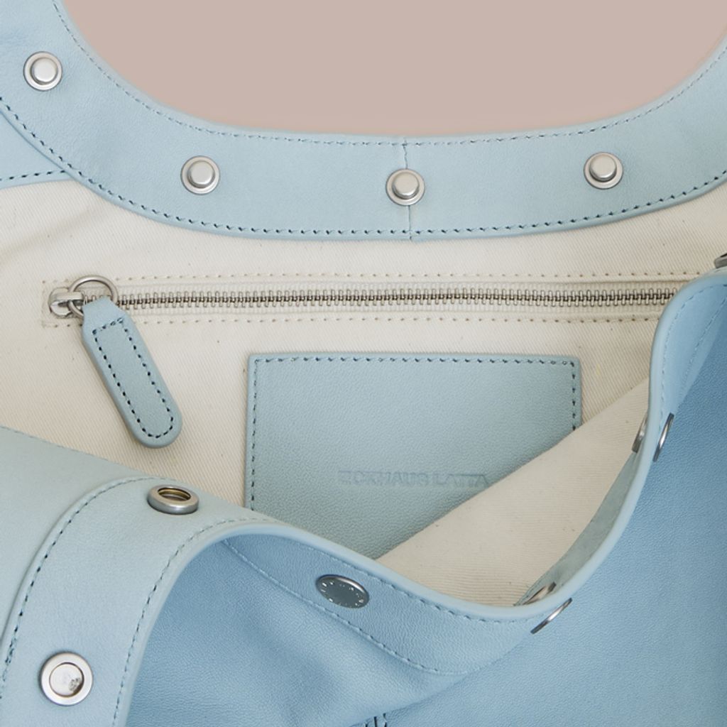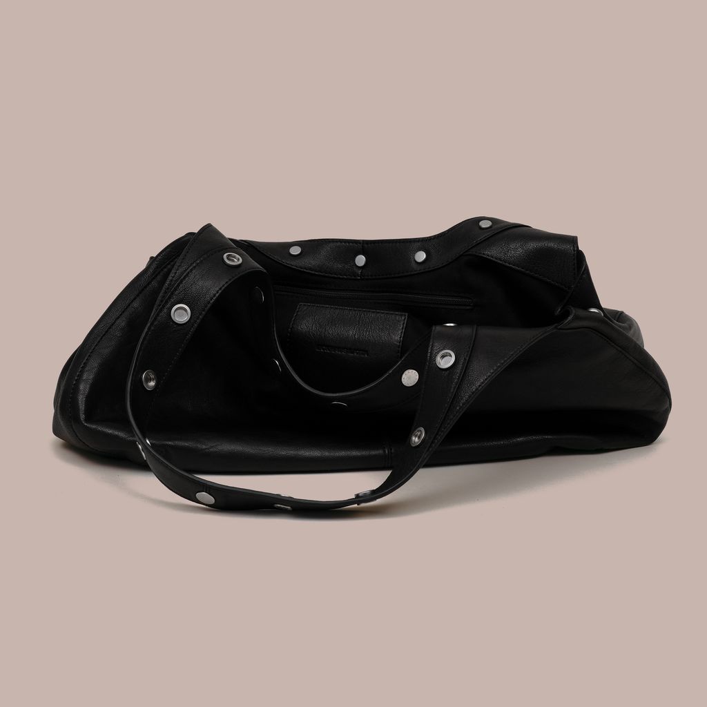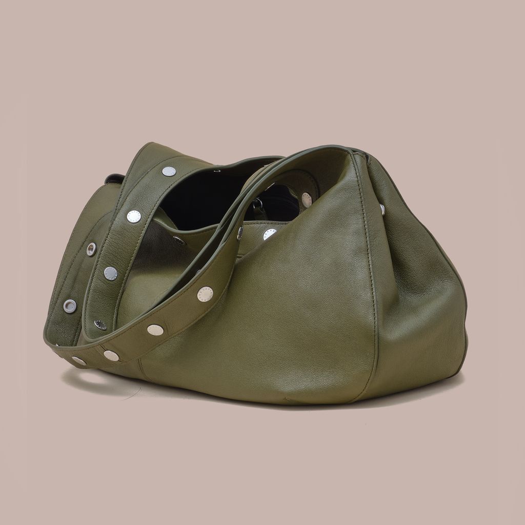 Our first bag, The Snap, was designed with utility in mind. Silver snaps encircle the straps, serving as a functional closure. The Snap is large enough to fit a laptop or your lunch, but small enough for a night out. Made in vegetable dyed Italian lambskin with an debossed logo and custom logo snaps. Internal zip pocket.