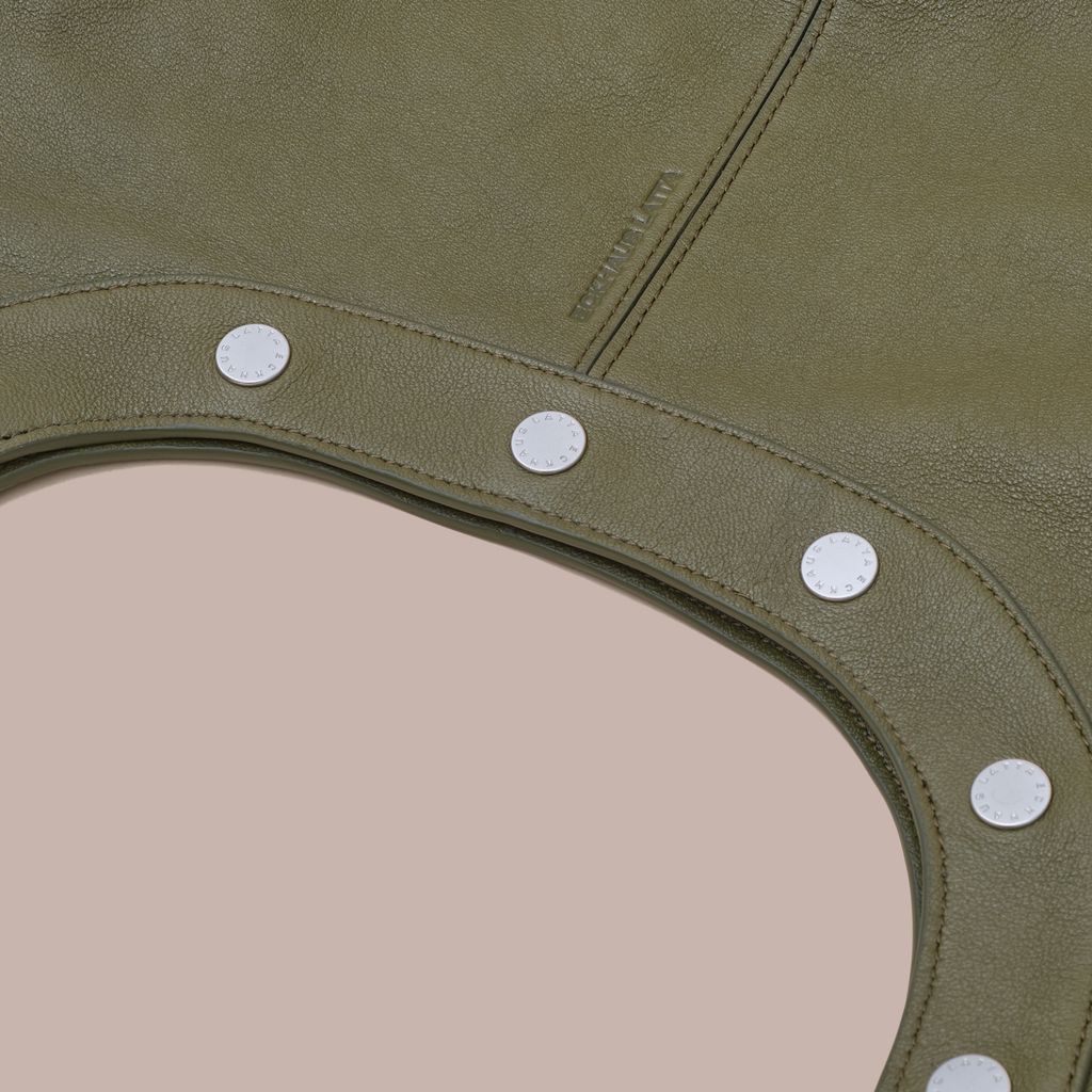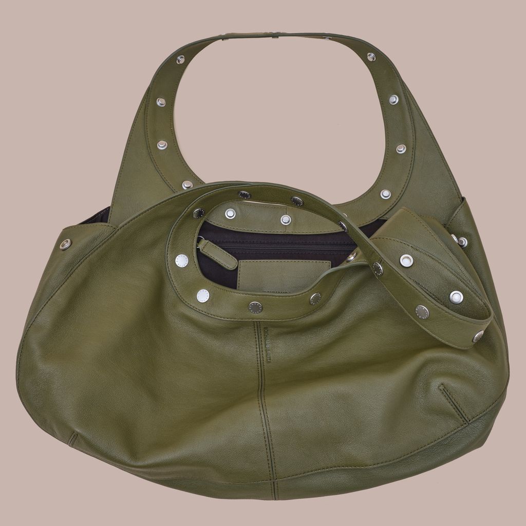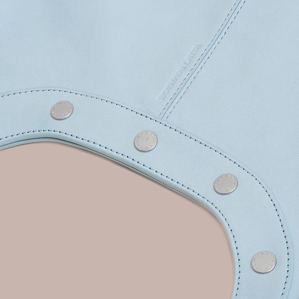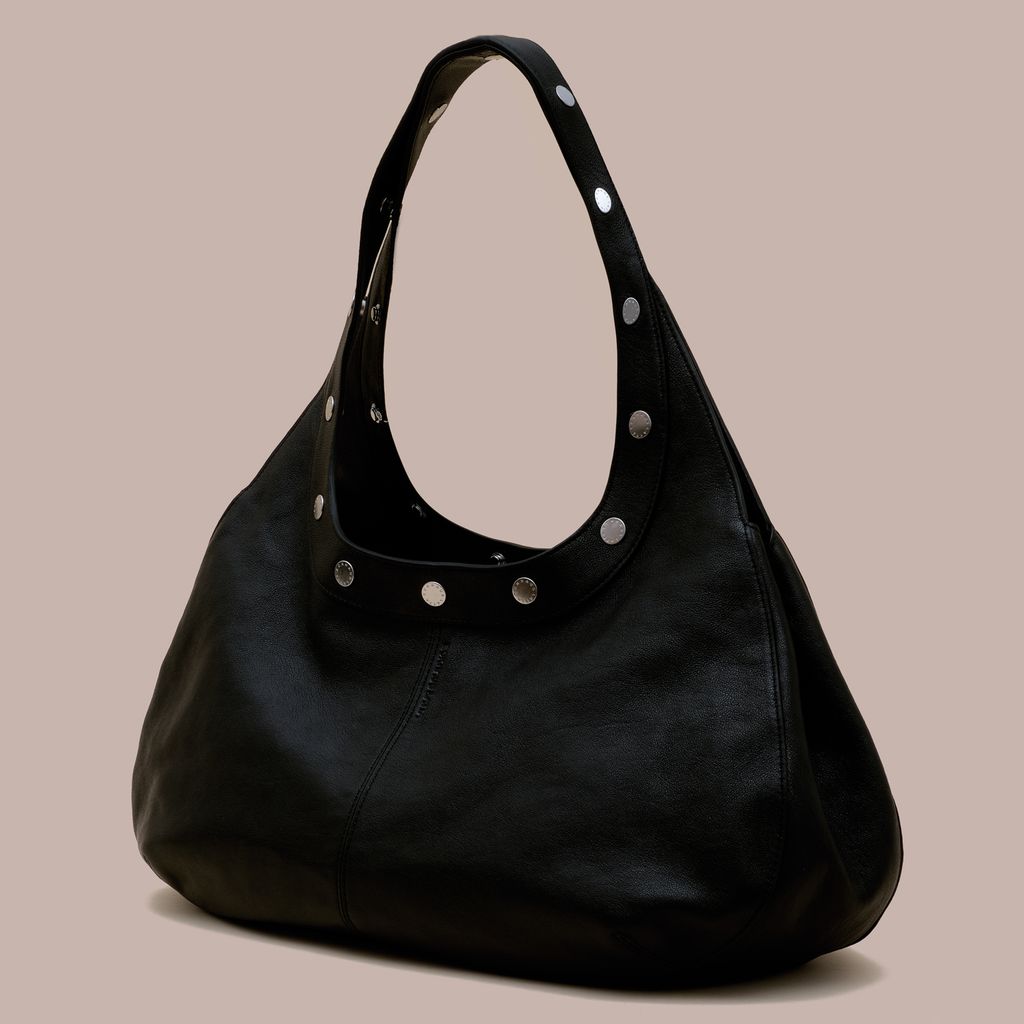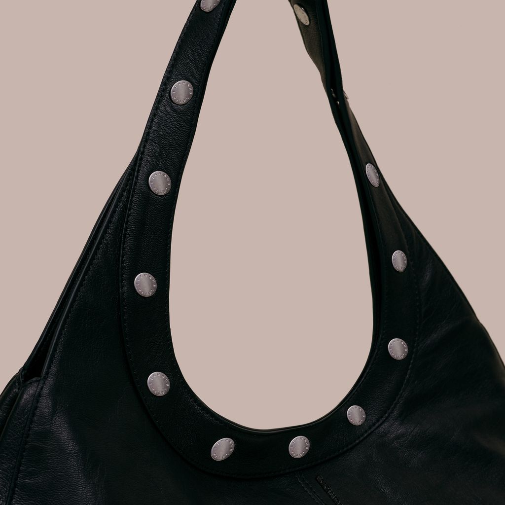 Our first bag, The Snap, was designed with utility in mind. Silver snaps encircle the straps, serving as a functional closure. The Snap is large enough to fit a laptop or your lunch, but small enough for a night out. Made in vegetable dyed Italian lambskin with an debossed logo and custom logo snaps. Internal zip pocket.