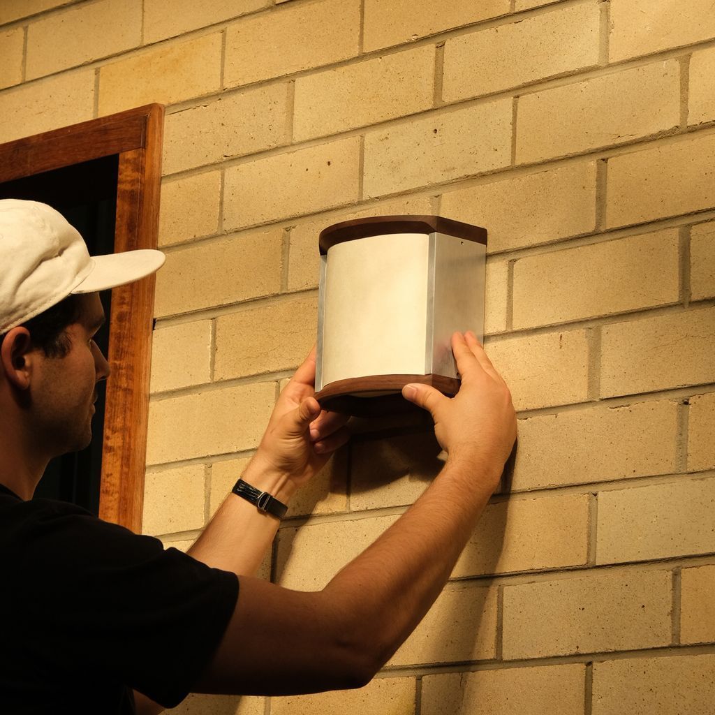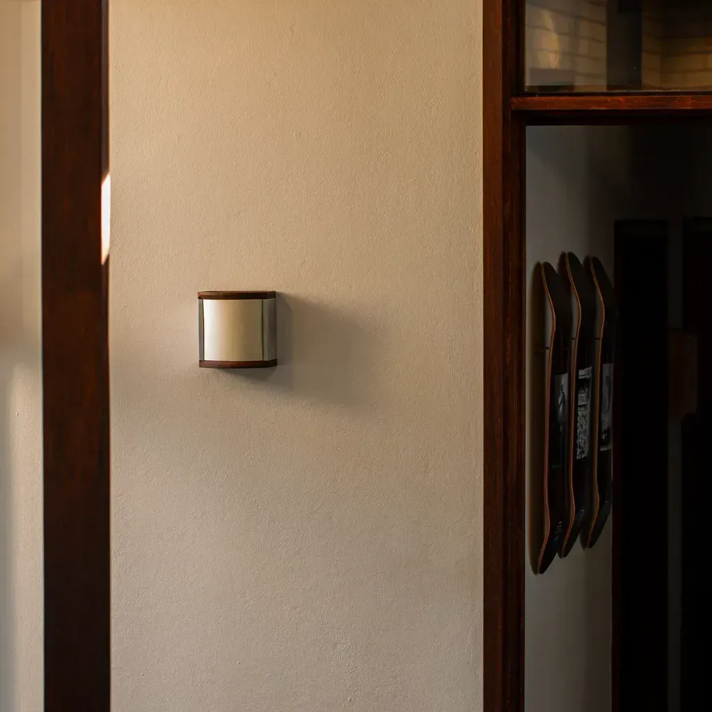 Designed for a hallway, living room or bedroom, the Standard Lamp – Wall is an elegant and intriguing wall lamp. The addition of Japanese Kohzo rice paper shade and timber provide a stark contrast to the brushed aluminium, adding a natural warmth and softness. When illuminated, the wall lamp creates a soft, ambient glow, adding warmth and calmness to any space.