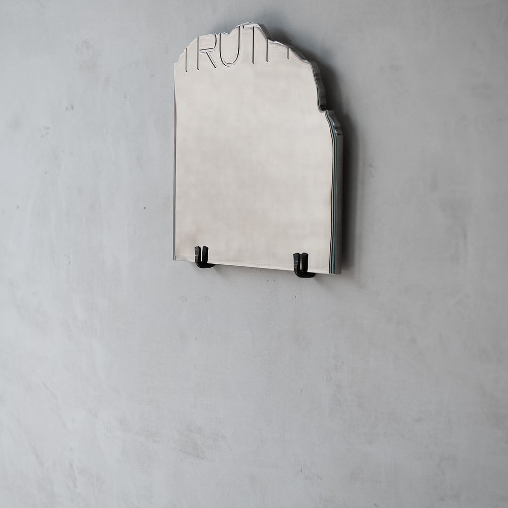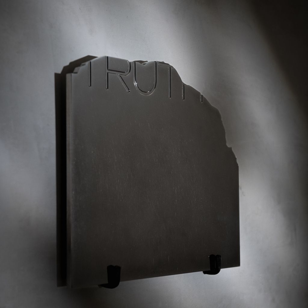 The Truth draws inspiration from a fragment of an ancient epigraph, transforming historical resonance into a contemporary reflective artwork. Its stainless steel surface is meticulously hand-brushed to achieve a mirror-like finish, inviting viewers to contemplate their own image within the piece.