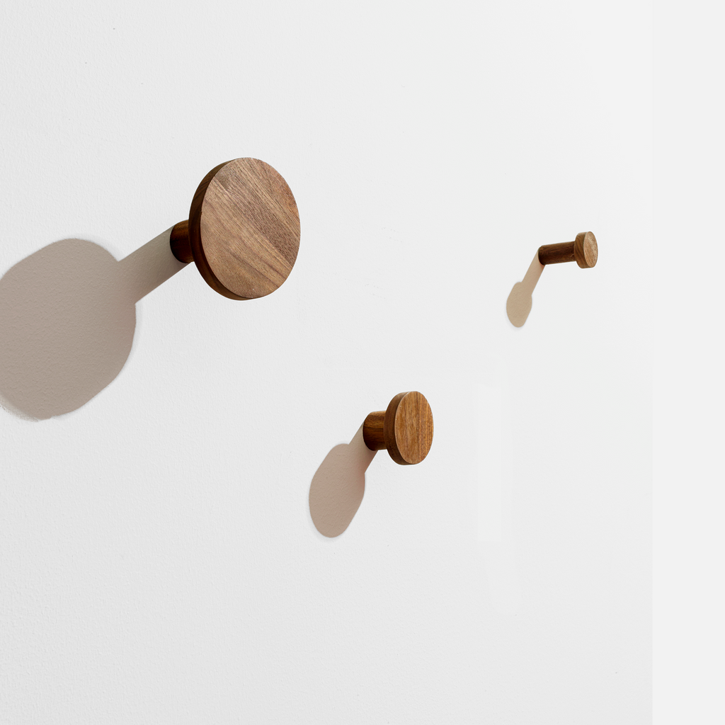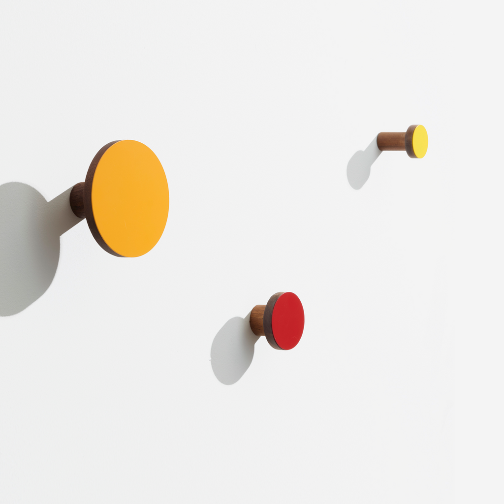 Thoughtfully crafted and scaled from solid FSC-certified Walnut, this trio offers sturdy, reliable support for coats, bags, towels, umbrellas, and everyday essentials—perfect for entryways, mud rooms, hallways, bedrooms, or anywhere you need a touch of order. The minimalist silhouette blends seamlessly into any décor, while the modular design invites creative colorful arrangements tailored to needs. Easy to install on the wall and designed for lasting durability, Ilan Three Wall Hooks transform everyday storage into a refined detail. The ilan Three Wall Hooks are where form meets function—beautiful, practical, and always at home in your space.