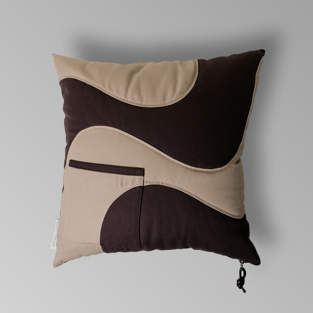 The Wavy Pillow is a design exercise that bridges the gap between home decor and lifestyle functionality. Our aim was to seamlessly blend comfort with utility. At first glance, the Wavy Pillow looks like a typical throw pillow (with a pocket), but it transforms into a fully functional tote bag when needed. Ideal for daily use in your living room, this pillow is also ready to go whenever you need a bag for a quick trip out.