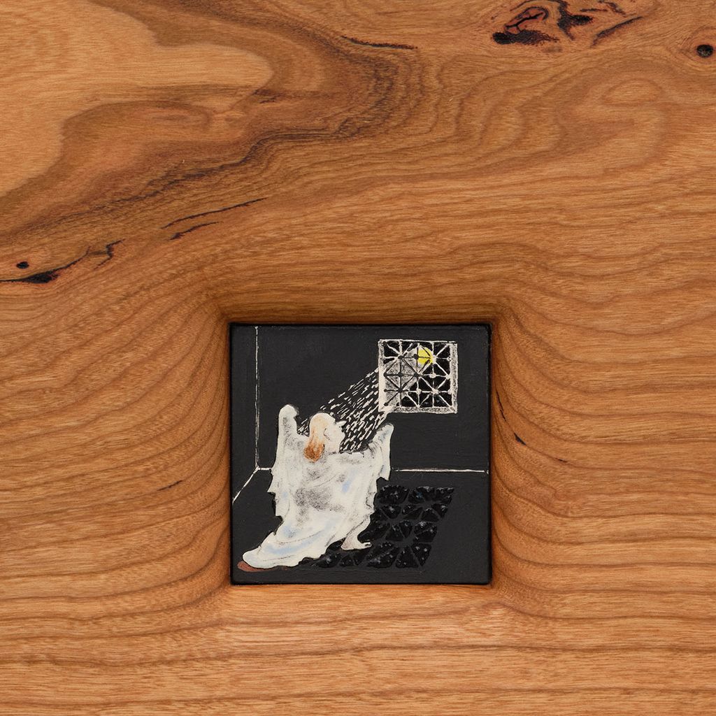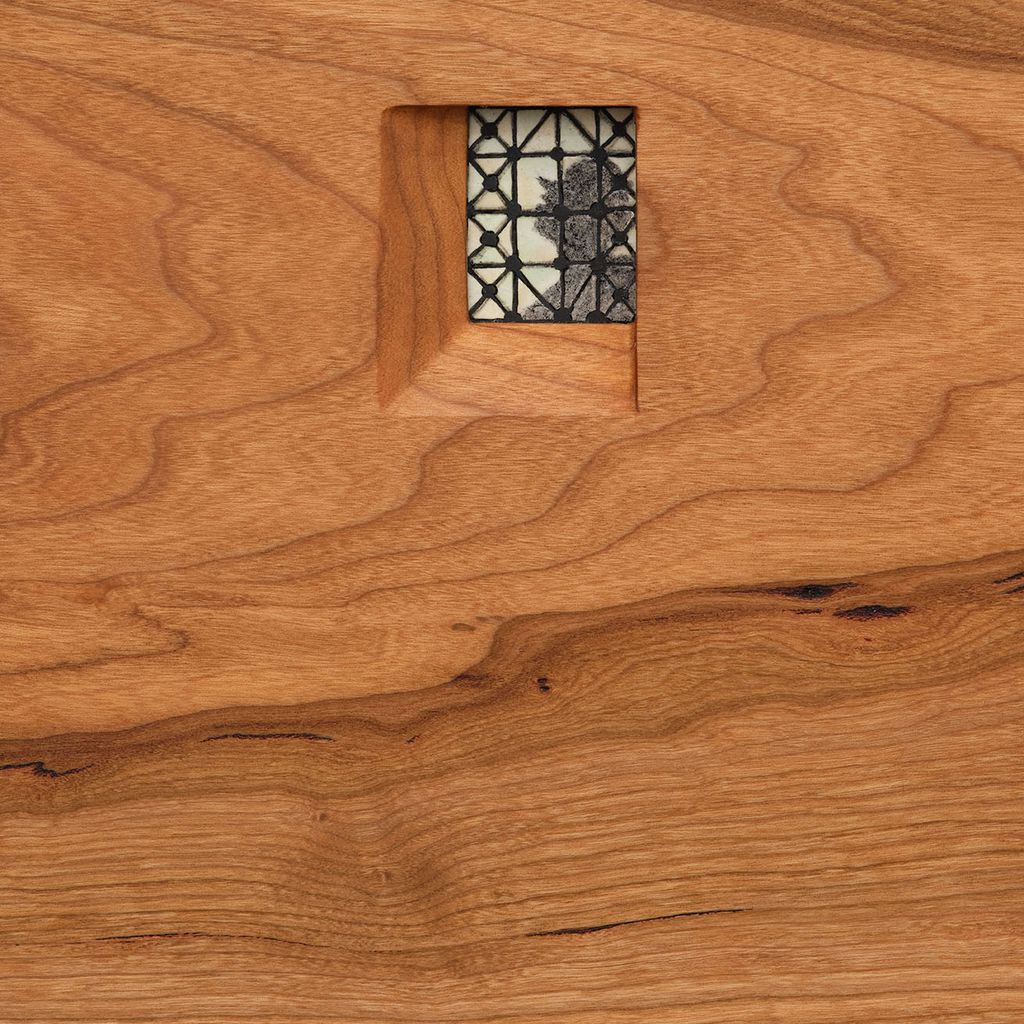 Glazed porcelain tiles embedded in oil-sealed cherry artist’s frame.