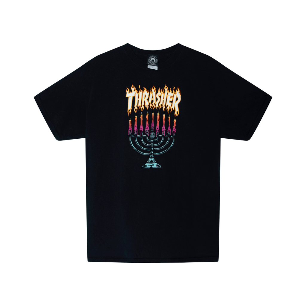 Thrasher Menorah Tee features graphic on front.
