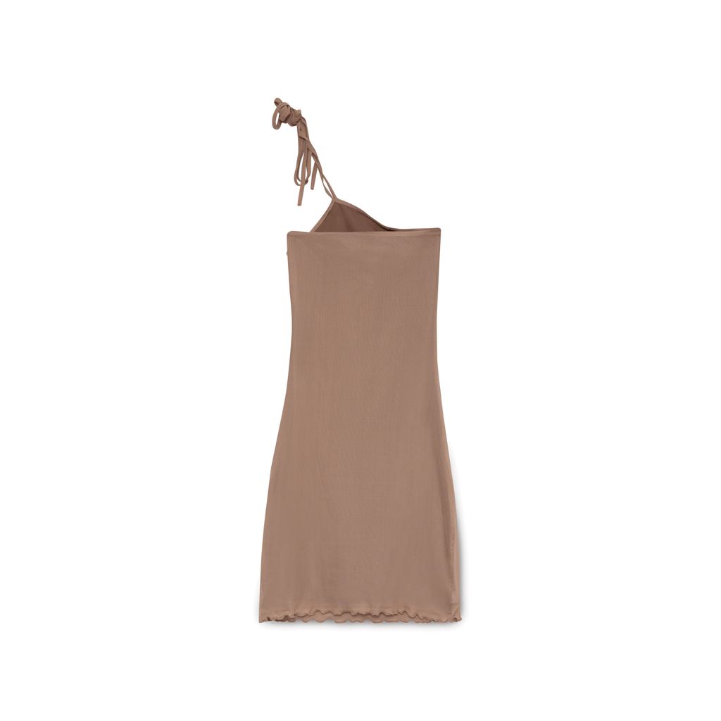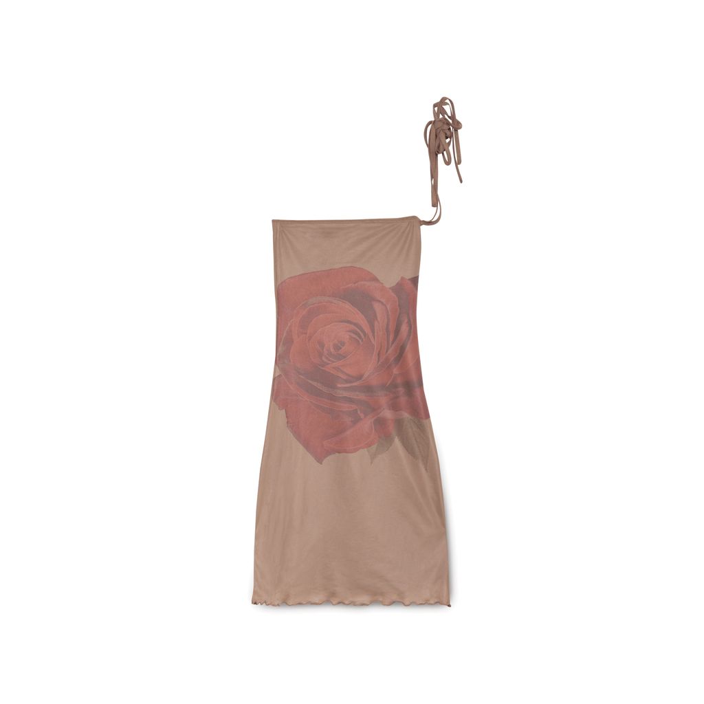 Tiger Mist Rose Print Dress features knot detail at from, printed rose graphic.