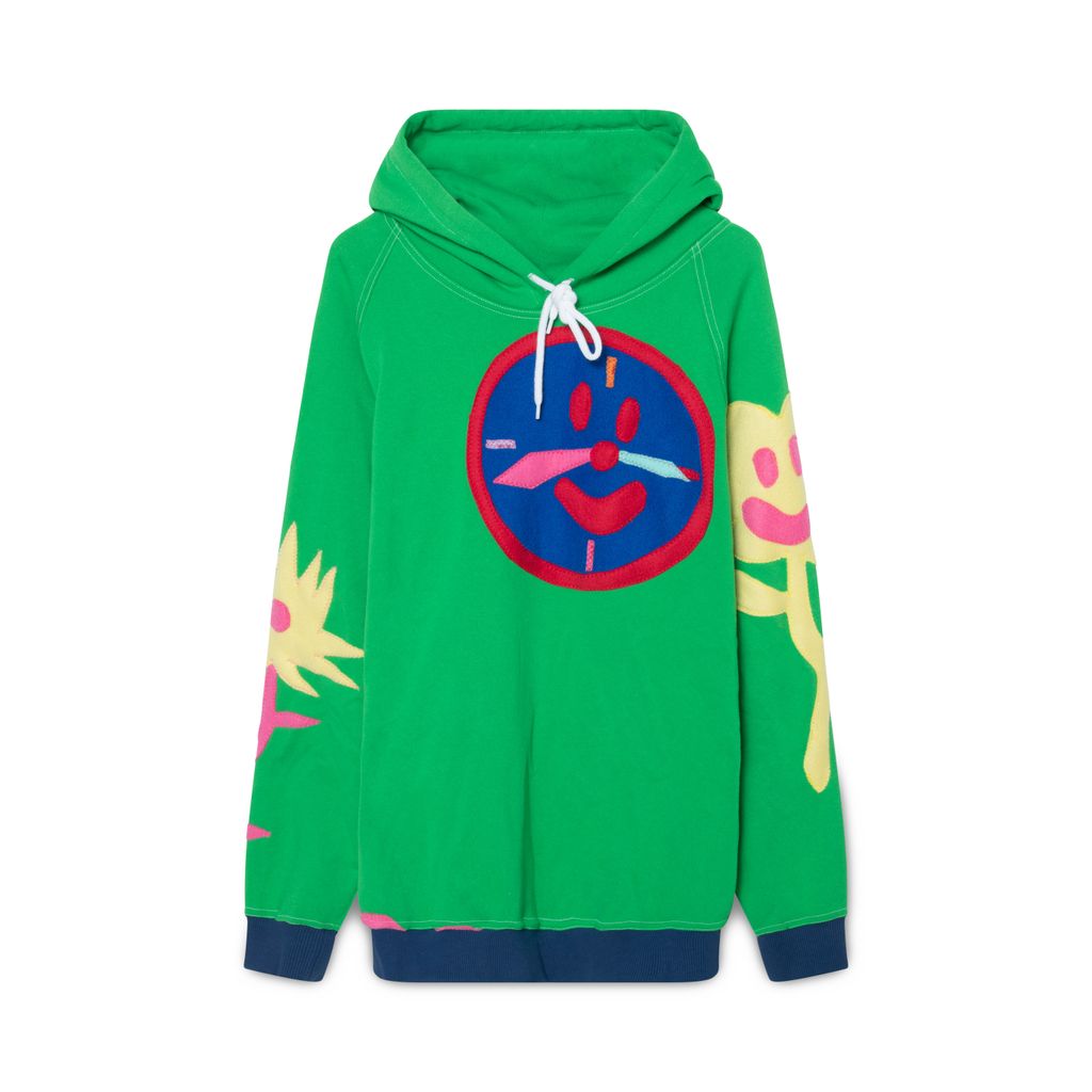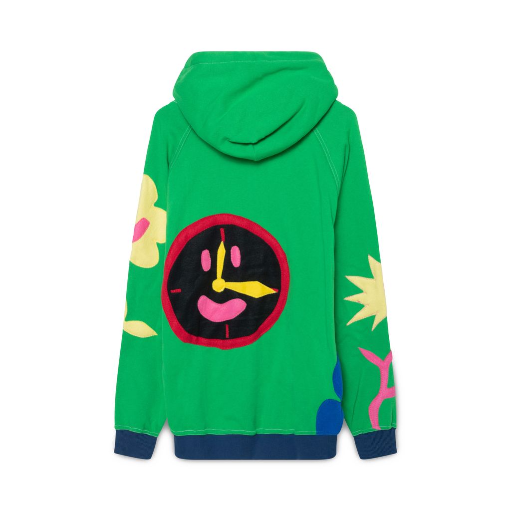 Time Change Generator Malcolm Dakar x Dan Bortz hoodie features hand embroidery appliqué throughout, and contrast color ribbing. Each hoodie is one of a kind.
