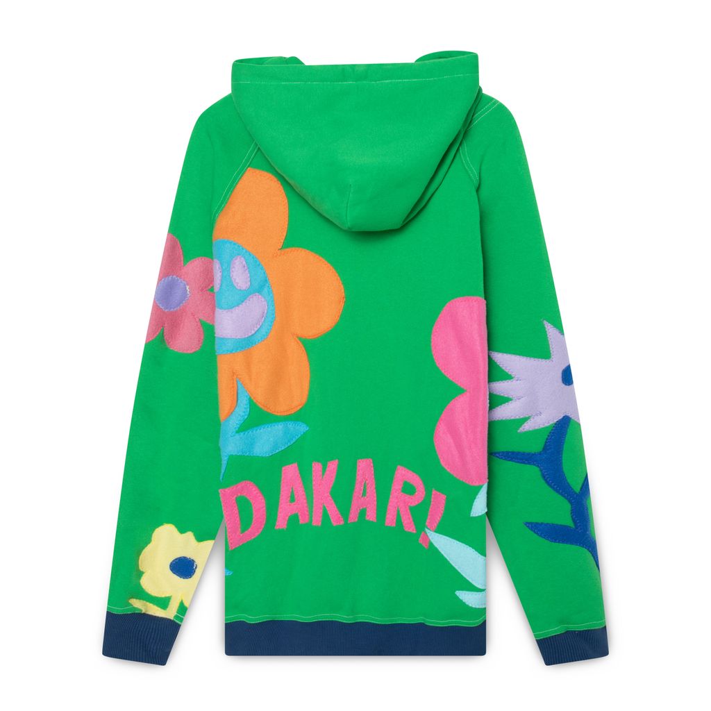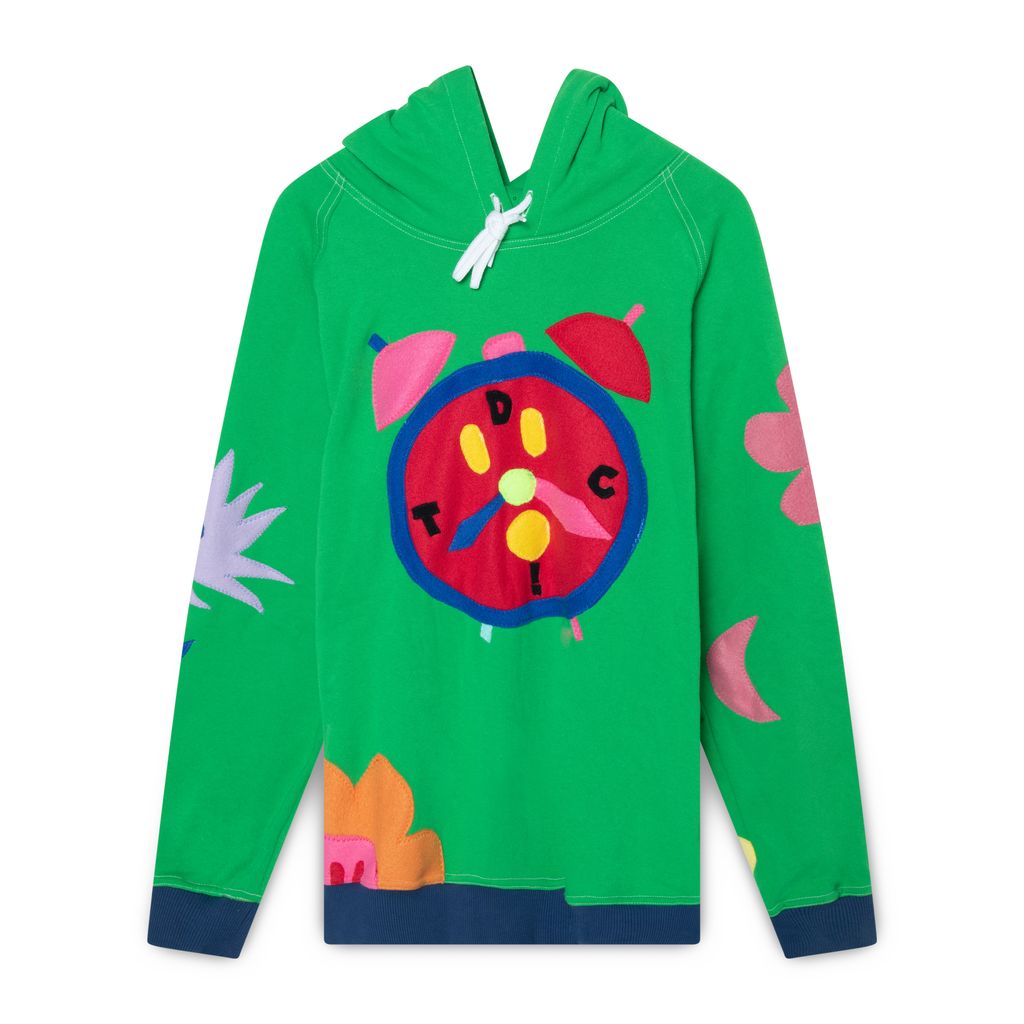 Time Change Generator Malcolm Dakar x Dan Bortz hoodie features hand embroidery appliqué throughout, and contrast color ribbing. Each hoodie is one of a kind.