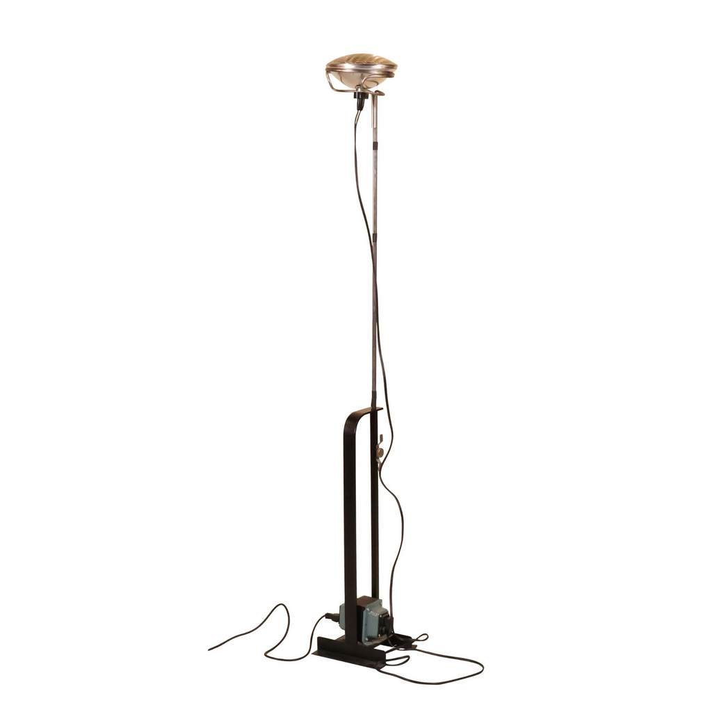 The Toio lamp was designed in 1962 by Achille and Pier Giacomo Castiglioni and produced by Flos. This lamp is in an unusual colorway, probably from the 1980s. The lamp was inspired by car head lamps, with an unusual free-floating lamp head and adjustable upright frame. The Toio Lamp is in MoMA's design collection.