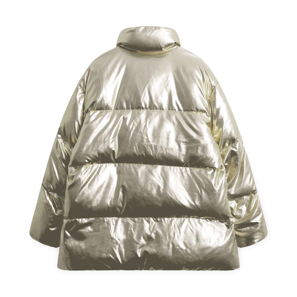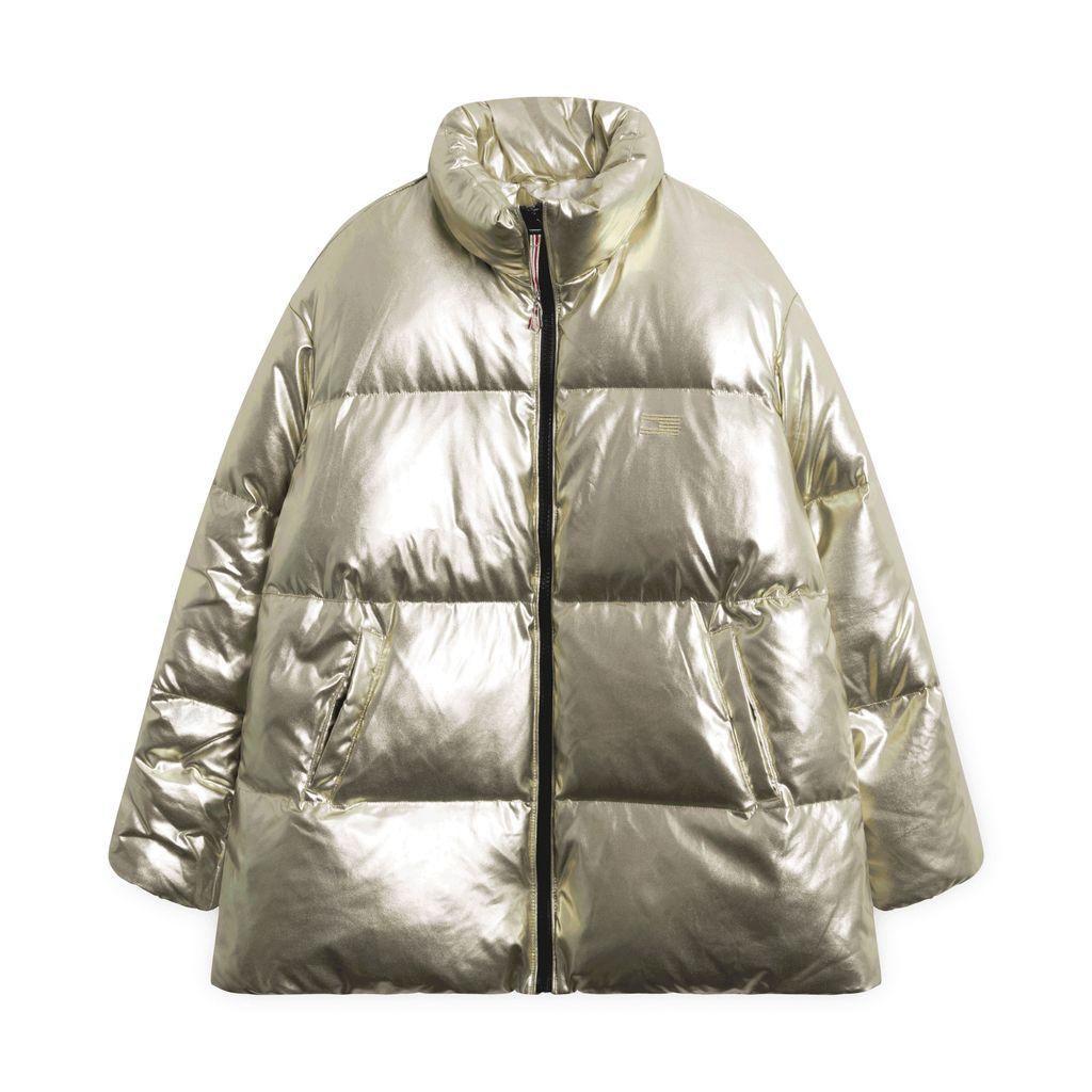 Tommy Hilfiger women's coat. As seen on the runway, our glam twist on the puffer boasts a lofty down and feather fill in metallic nylon. This statement coat echoes '90s nostalgia, the era when fashion and streetwear collided. A limited-edition style from the TOMMY ICONS capsule collection—a celebration of our heritage classics, elevated with luxe touches and fresh silhouettes.