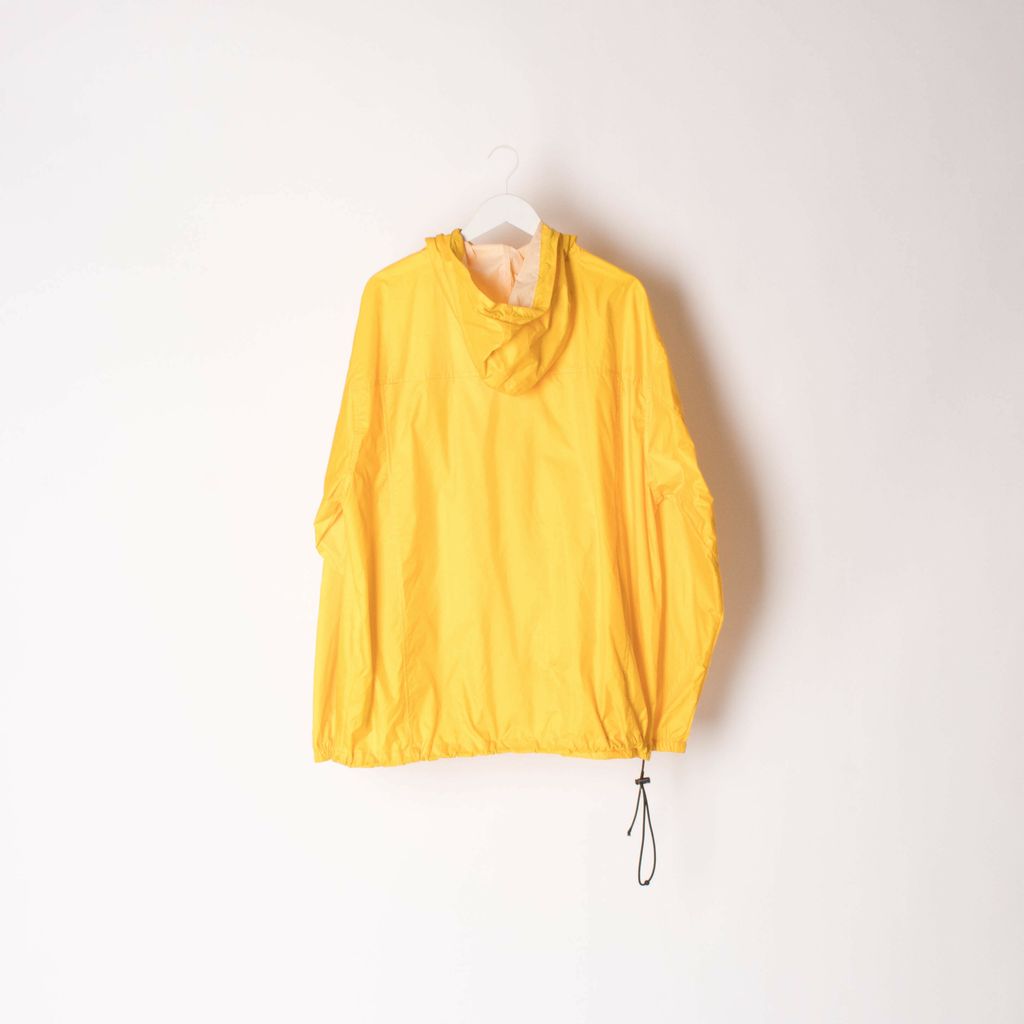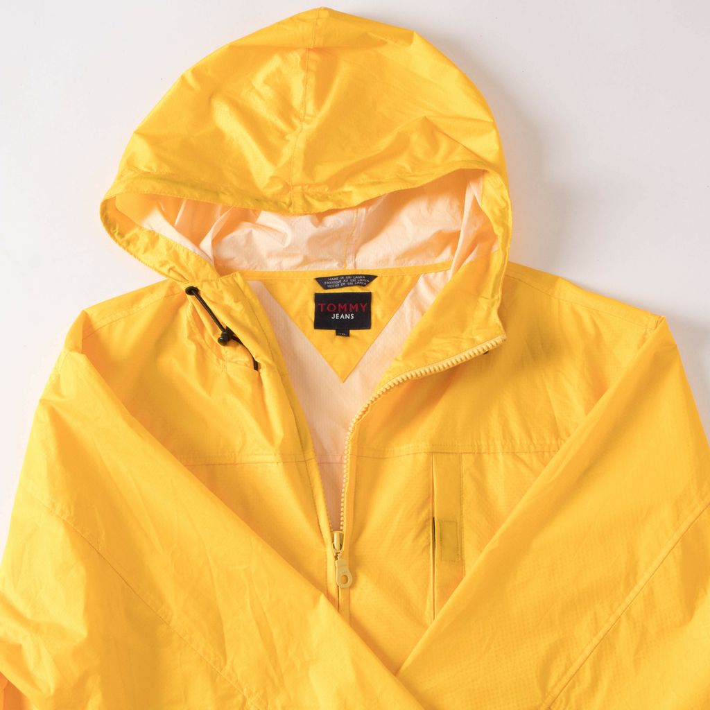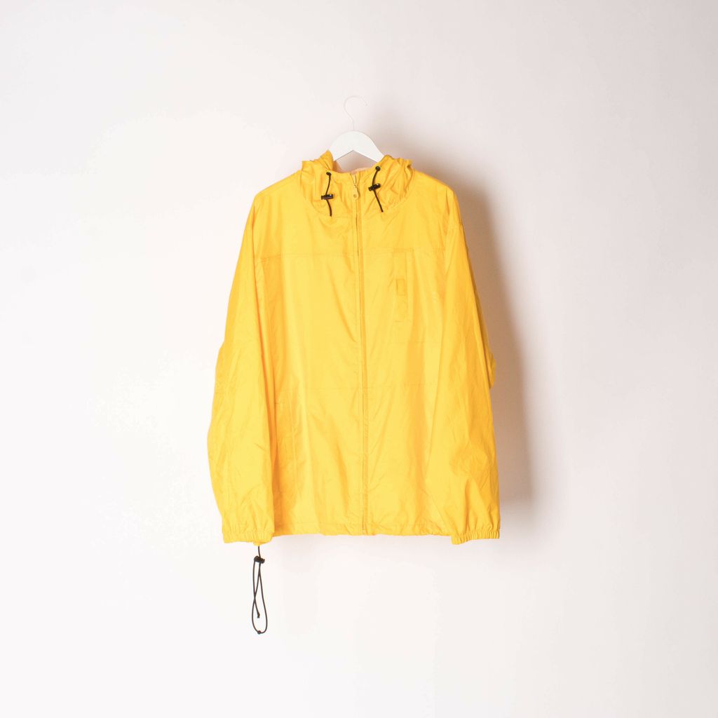 Wearing this golden yellow jacket, it's impossible to be missed, and a necessary over layer going into fall. Features flat side pockets, elastic wrist cuffs, invisible front zipper, and toggle pull tie waist band.