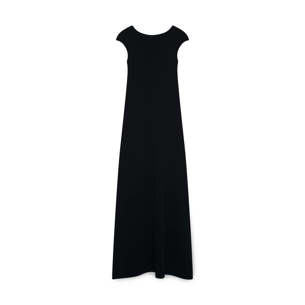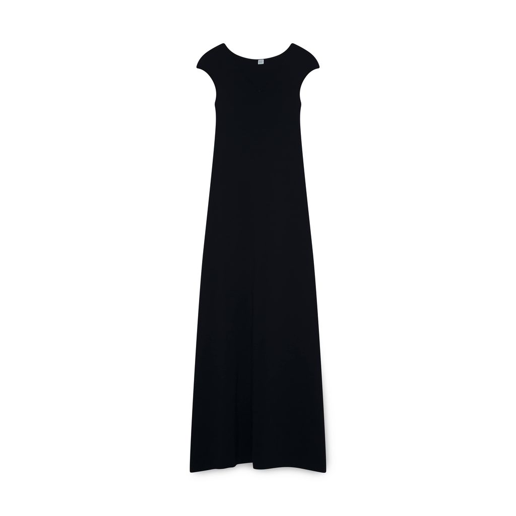 Toteme Black Cap Sleeve Dress features v-neck collar and maxi length.
