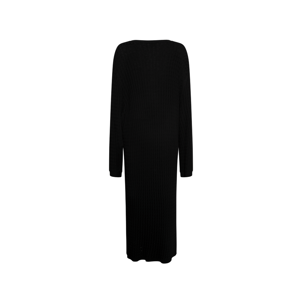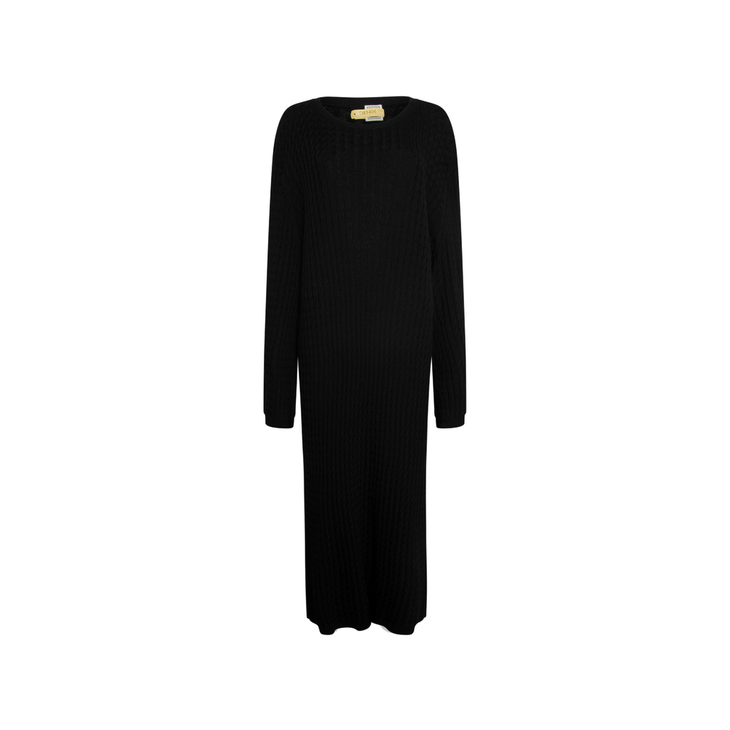 Toteme Cable Knit Dress features round neckline, wide sleeves, midi length.