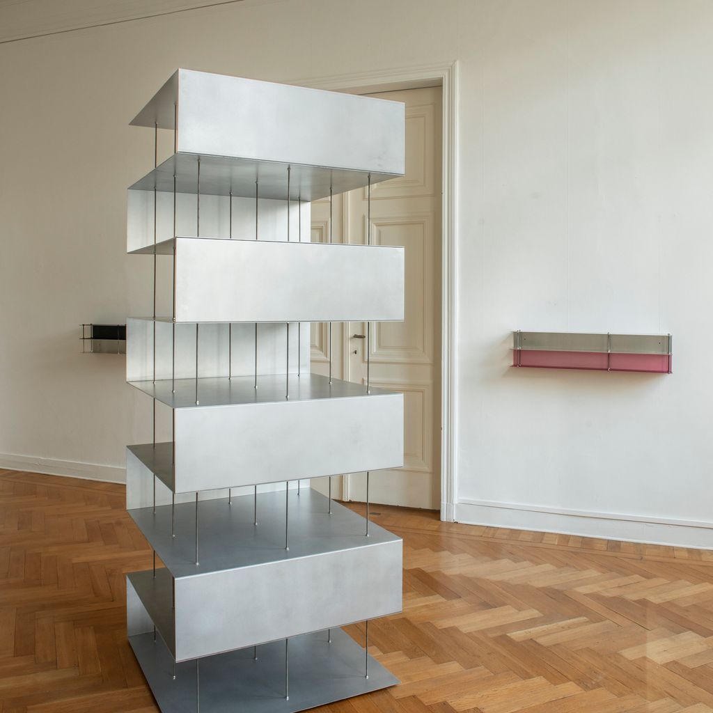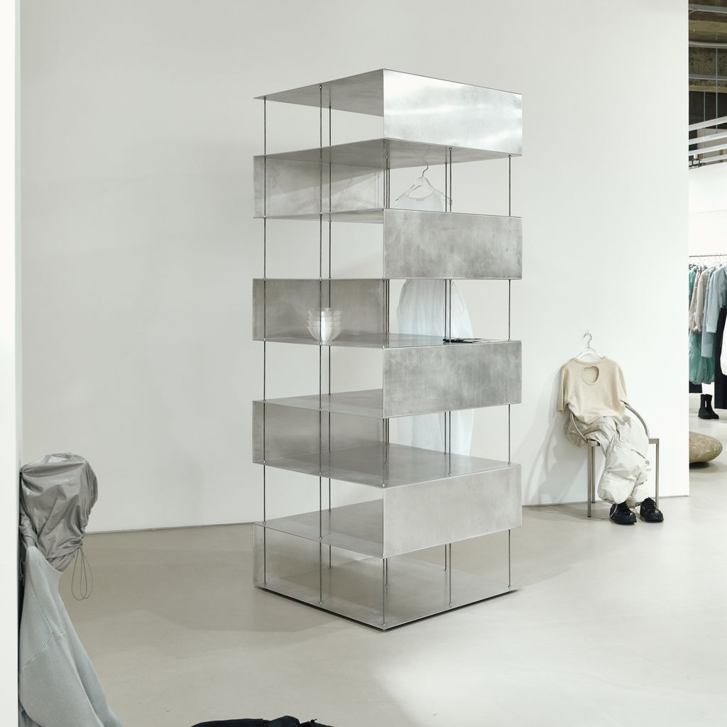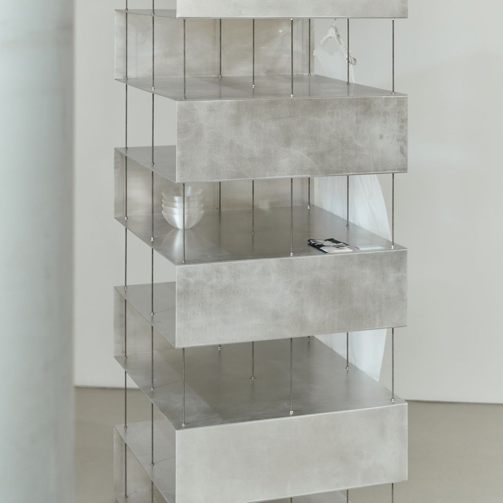 Continuing to explore the possibilities within the system, the Aluminium Shelf Series attempts various extensions and configurations within the system and presents with the Aluminium Tower, an up-scaled and freestanding version, showcasing its sculptural potential on a larger scale.