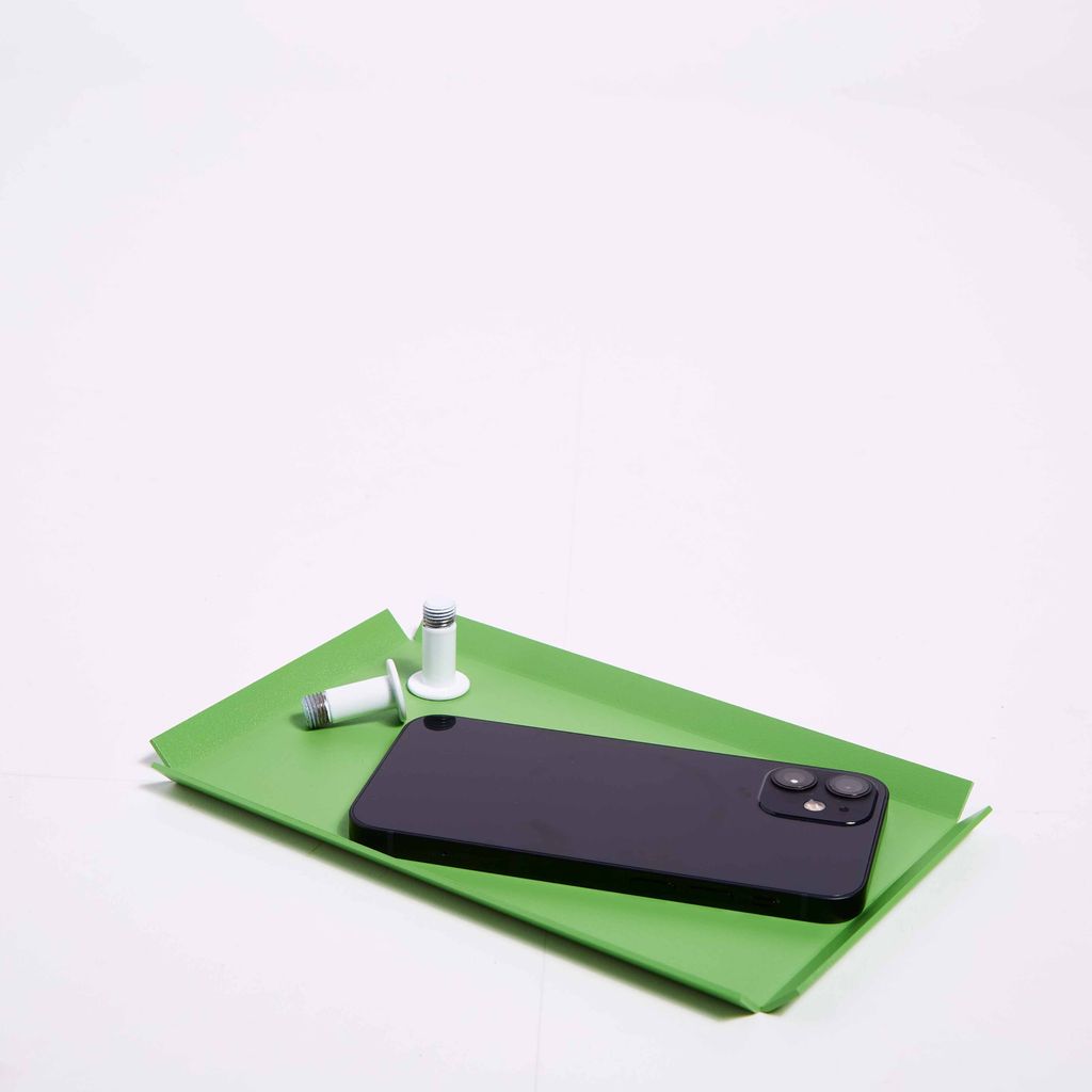 Tray is a powedercoated aluminum catch-all tray. Made in the USA.