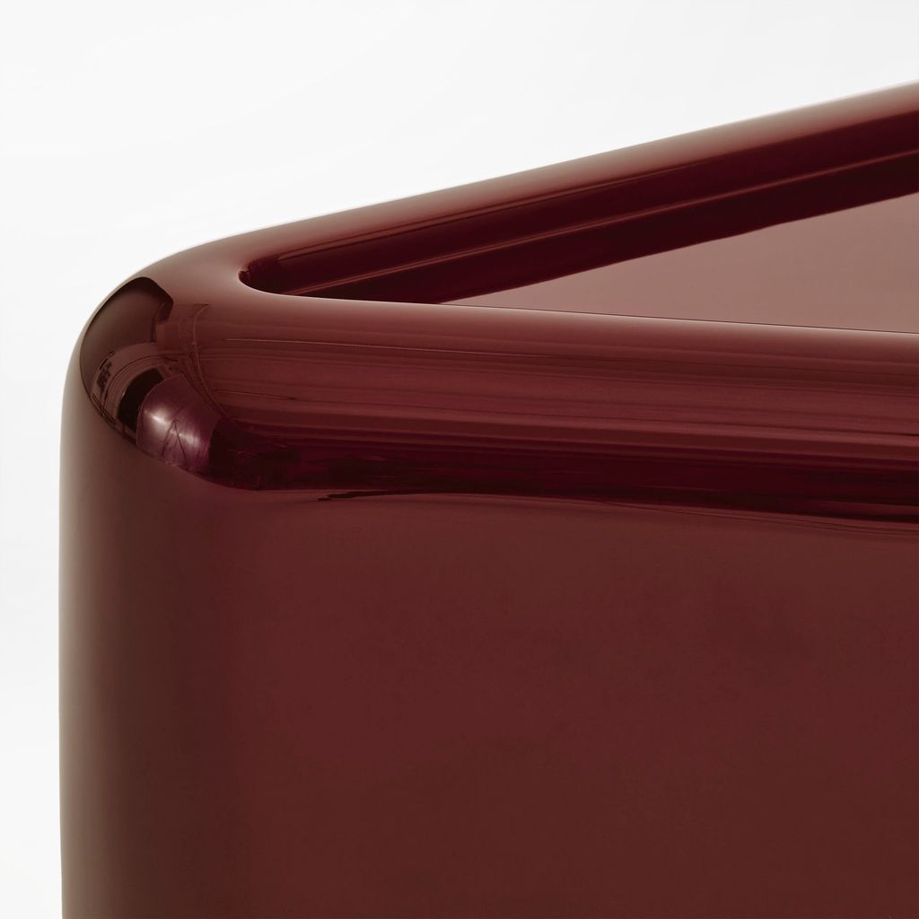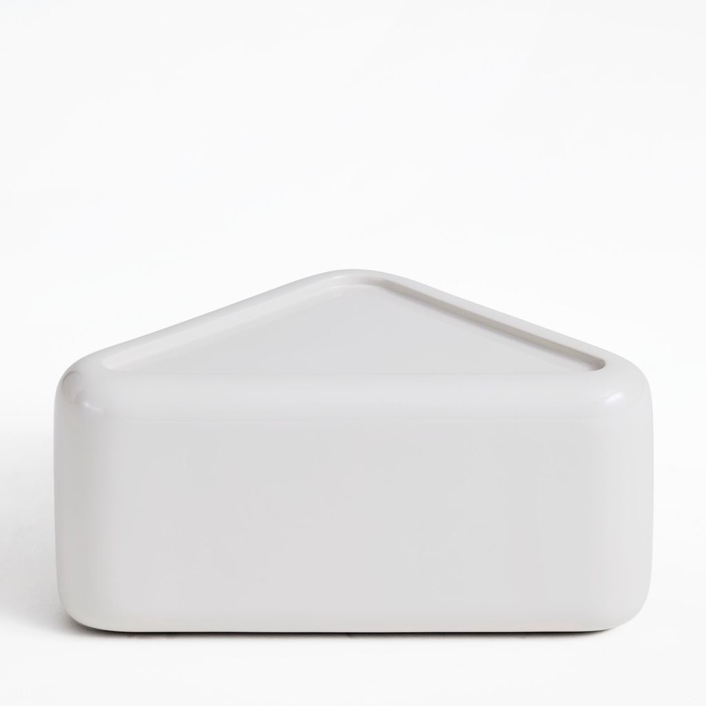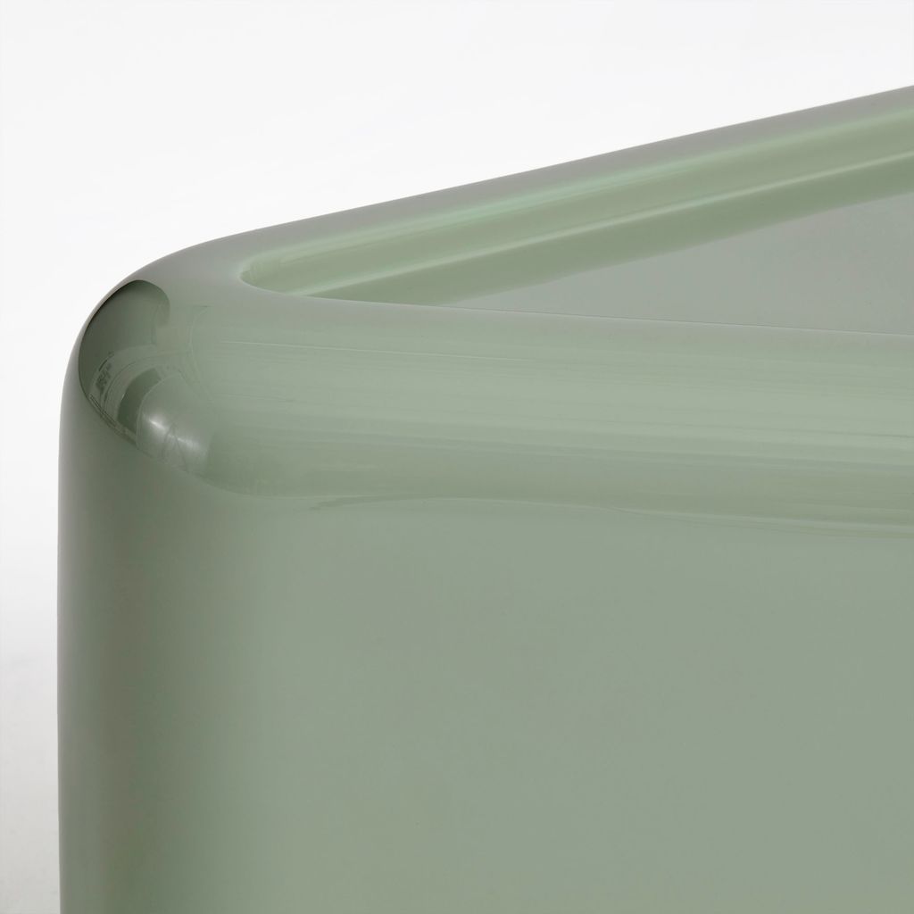 Each table is meticulously handcrafted by master artisans using fiberglass, which is first cast in molds and then manually coated and polished multiple times to achieve different high-gloss finishes. The entire production process is done by hand, requiring a high level of craftsmanship for every piece. The modular tables come in five colors: white, brown, green, red, and anthracite.