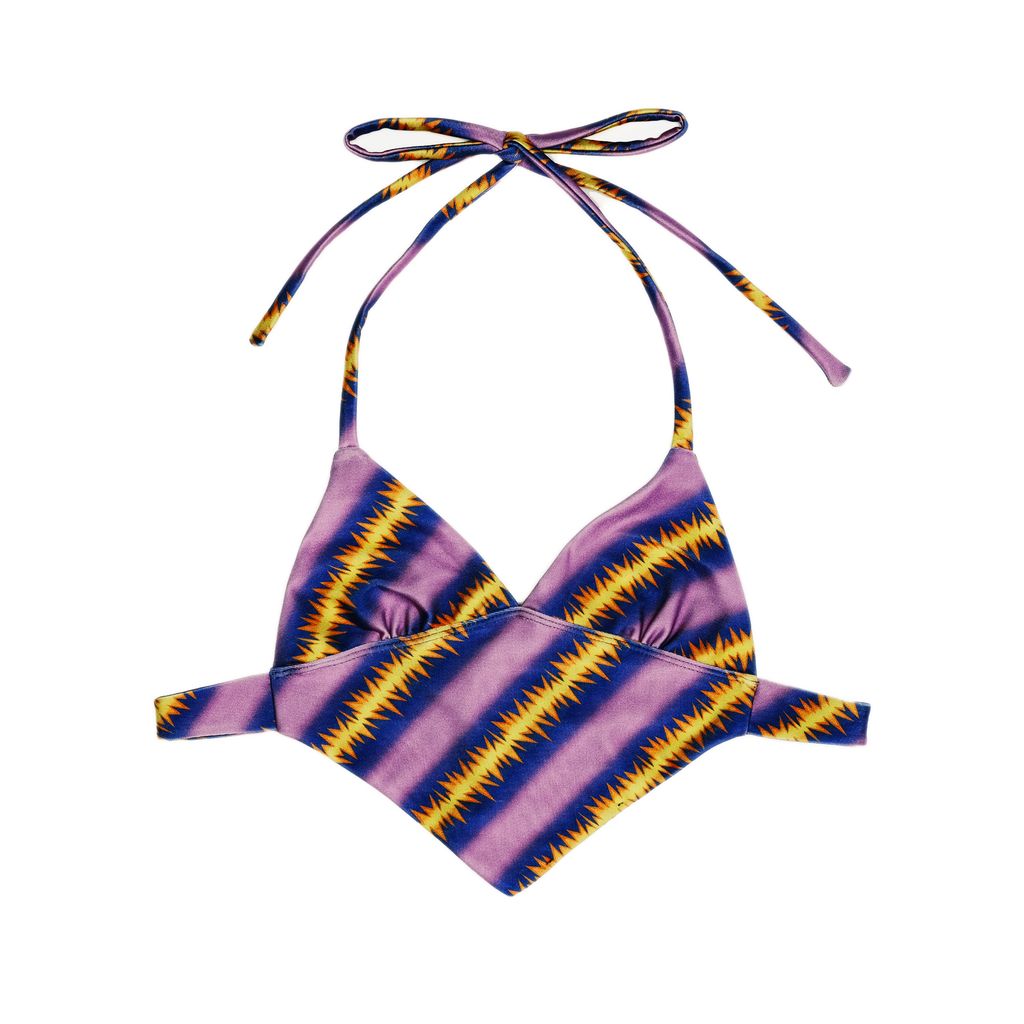 Trio Bikini Top in Shock Purple features adjustable neck and back ties.
