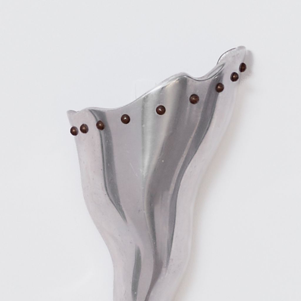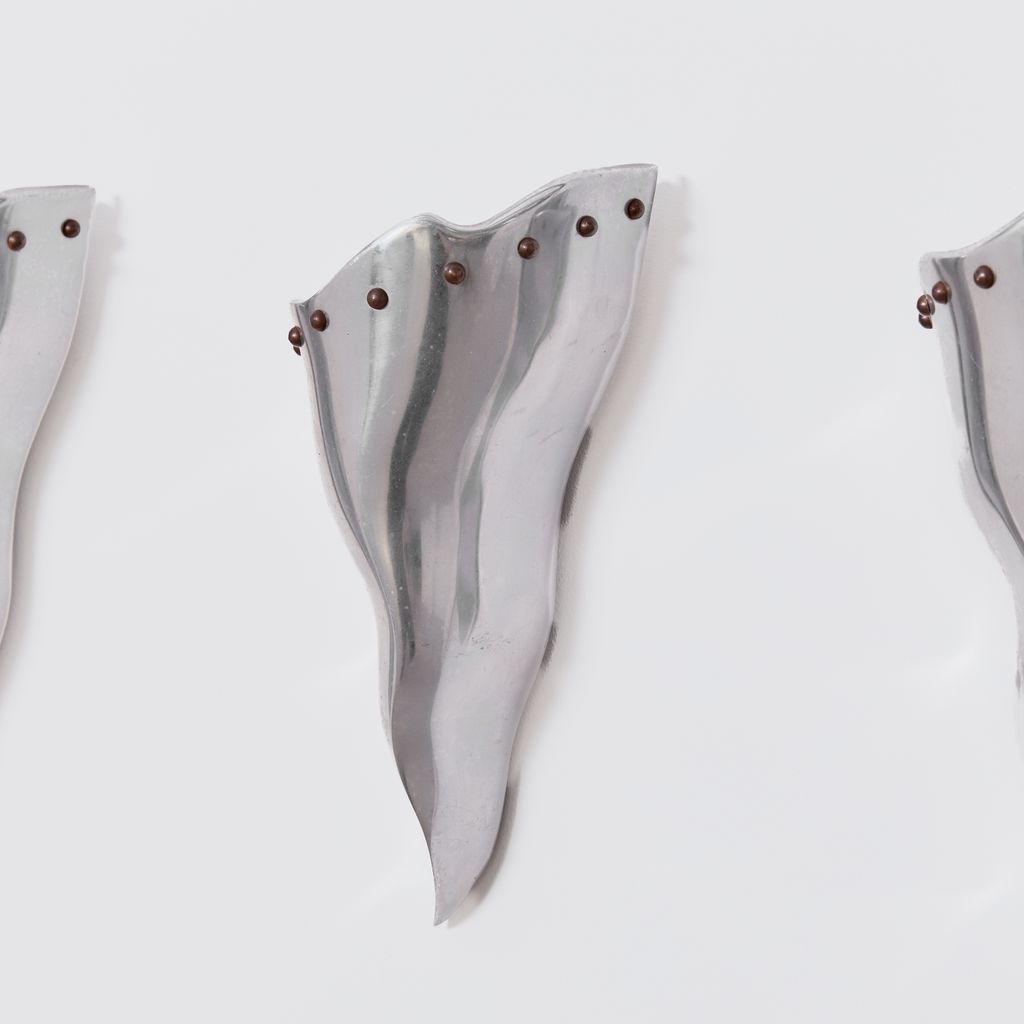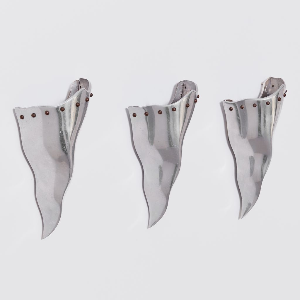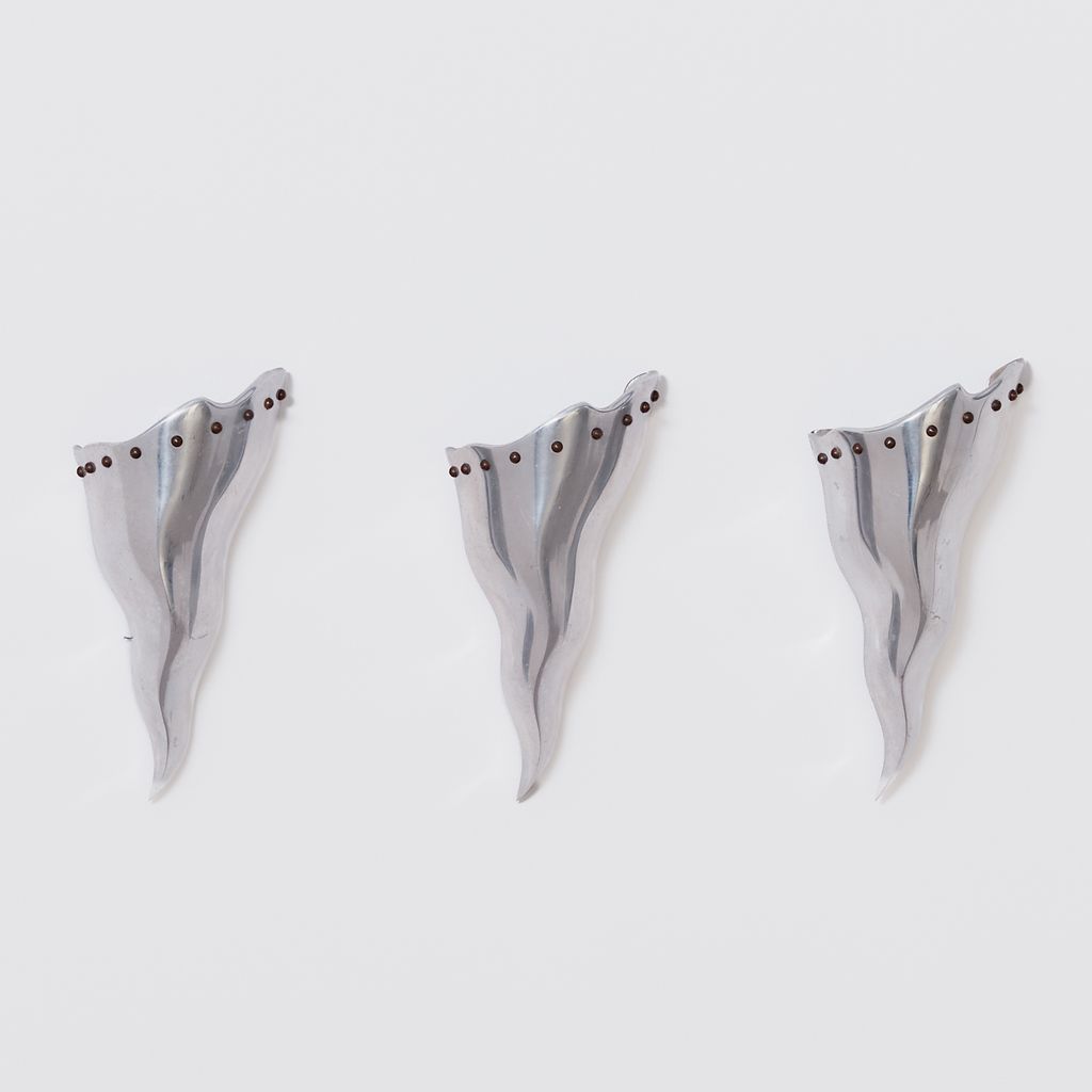 Trio of of postmodern sconces by French designer Bernard Dequet. Known for his undulating, sculptural works in aluminium, these "Cyrano' sconces bear the hallmarks of his distinctive aesthetic. To be hardwired by a electrician. Designer: Bernard Dequet Manufacturer: Lucien Gau